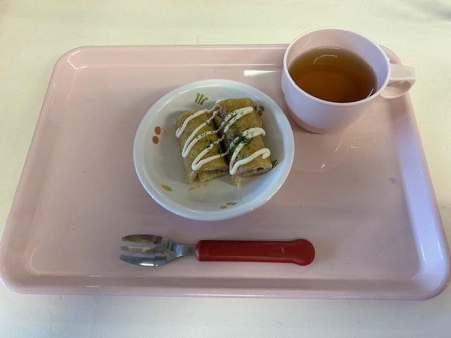 2025.11.19 今日の給食 2025年11月19日 食育献立(山形県の郷土料理) 【普通食】 麦ごはん・カレイのバター醬油かけ・青梗菜と平天のおひたし・芋煮汁 【おやつ】 どんどん焼き・お茶 一覧へ戻る