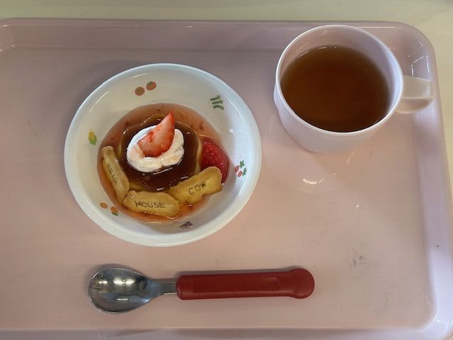 2025.12.25 今日の給食 2025年12月25日(木)クリスマスメニュー 【普通食】 ピラフ・トナカイハンバーグ・ブロッコリーとポテトのサラダ・お星さまスープ 【おやつ】 クリスマスプリン 一覧へ戻る