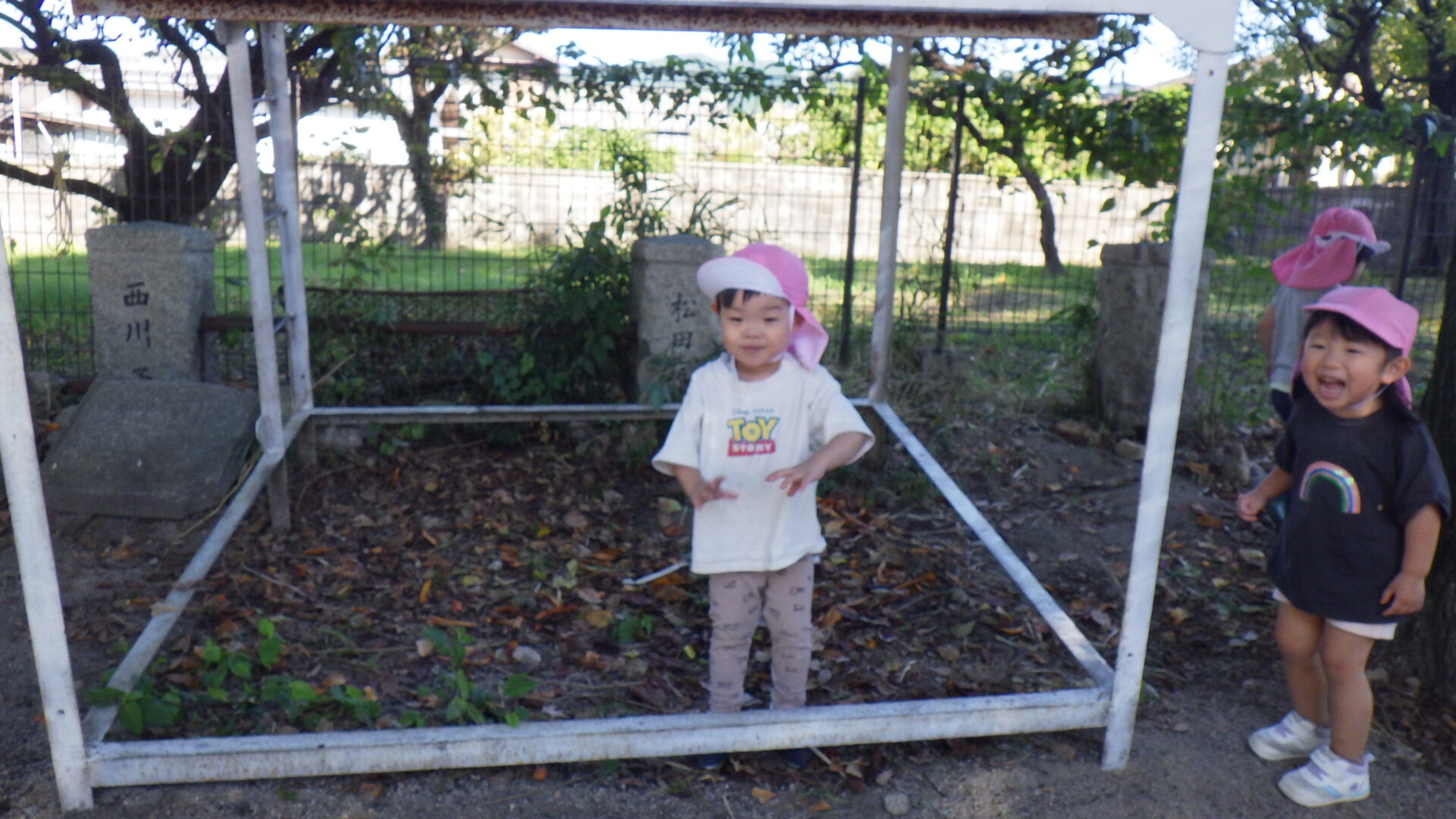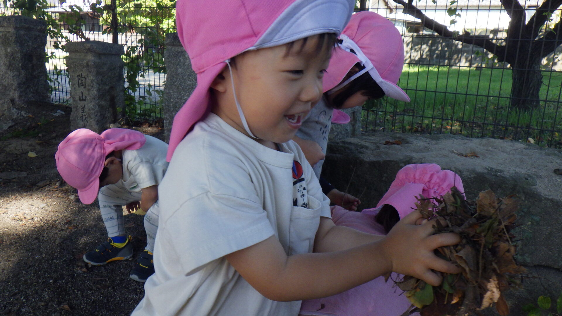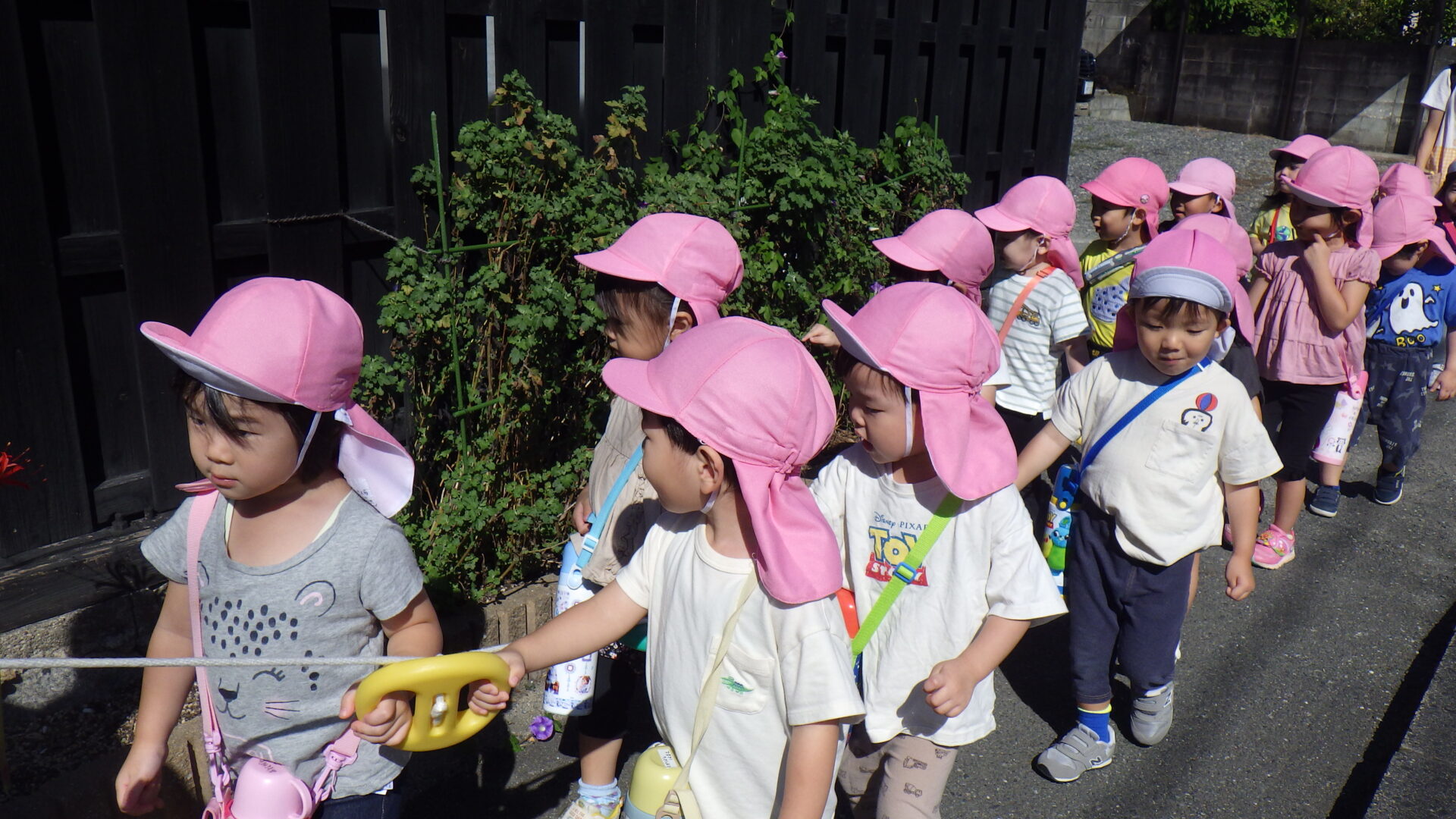 少しずつ秋らしい気候になってきたので、お散歩に出かけたあめ組(2歳児)の子ども達。
