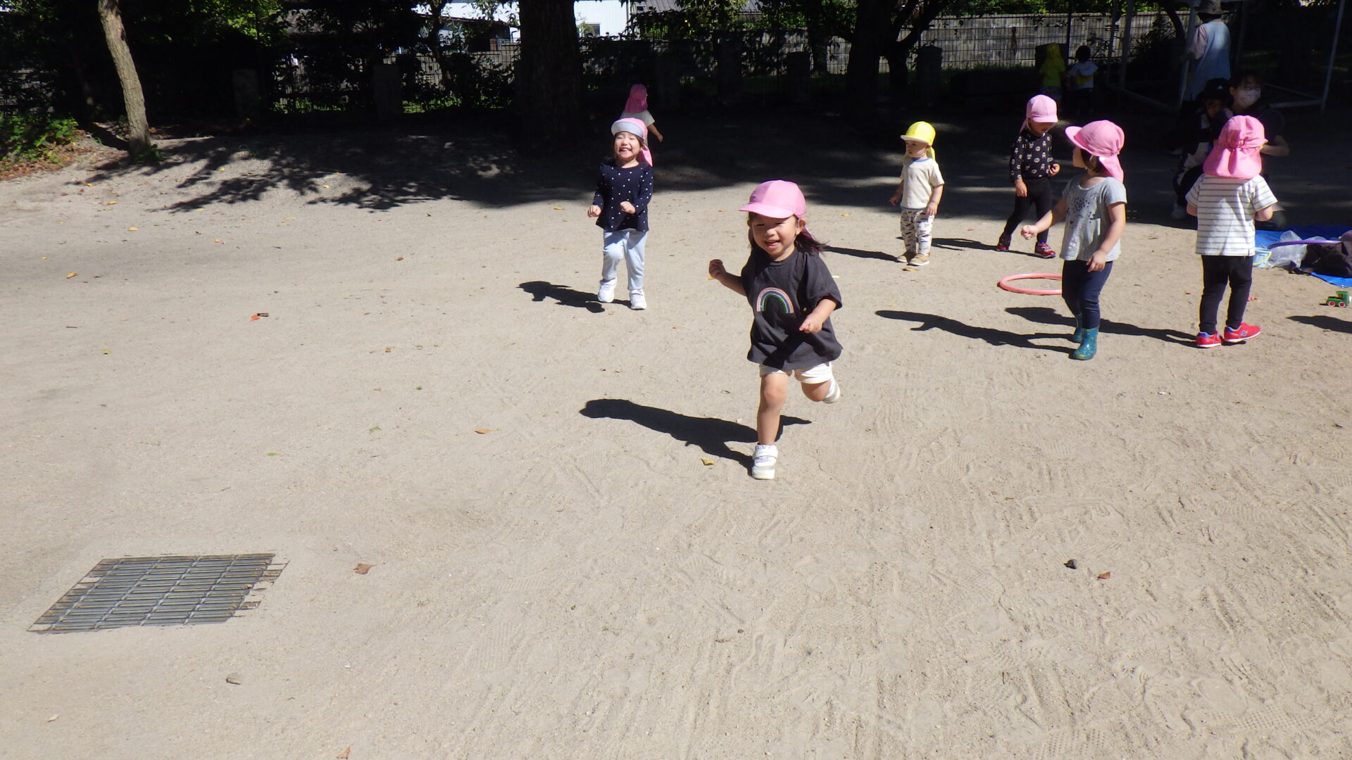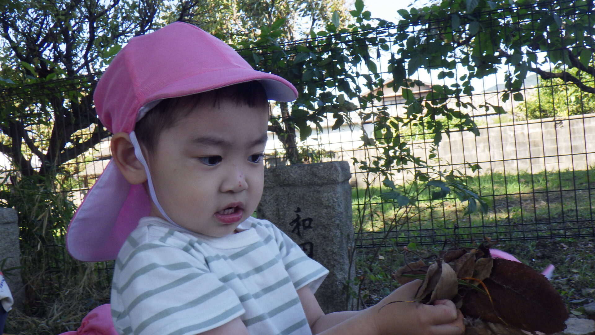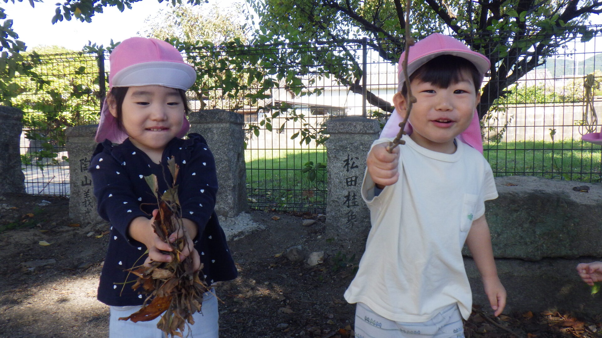 少しずつ秋らしい気候になってきたので、お散歩に出かけたあめ組(2歳児)の子ども達。