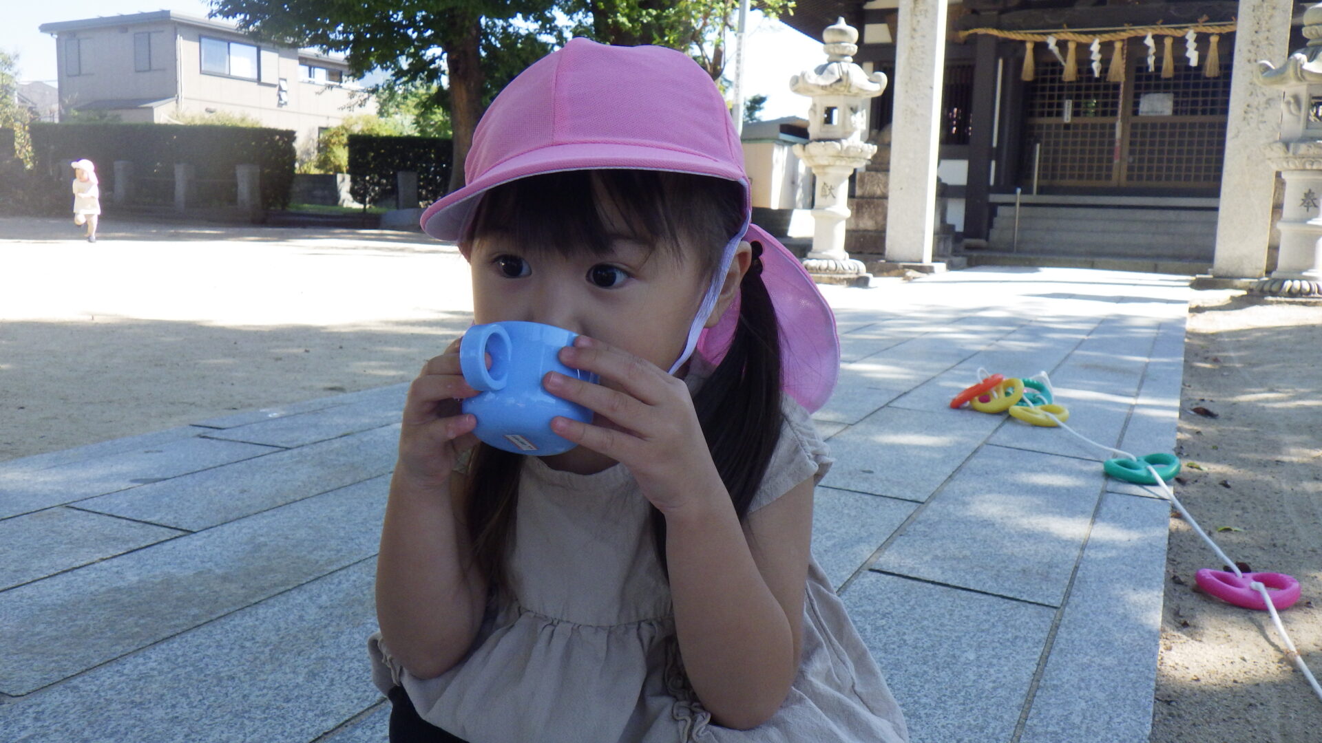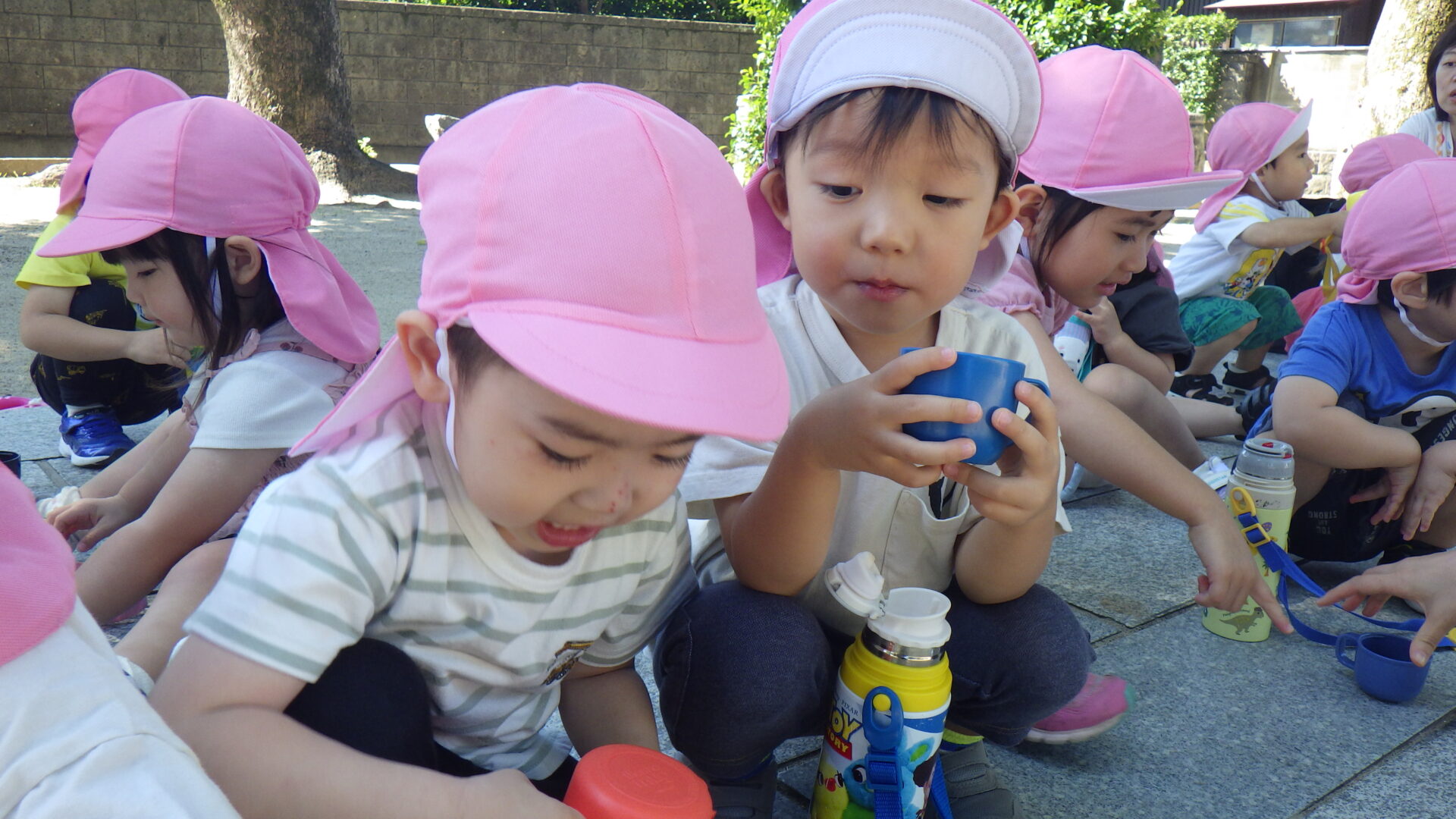 自分の水筒を使って、お茶を飲むこともずいぶん上手になってきました。