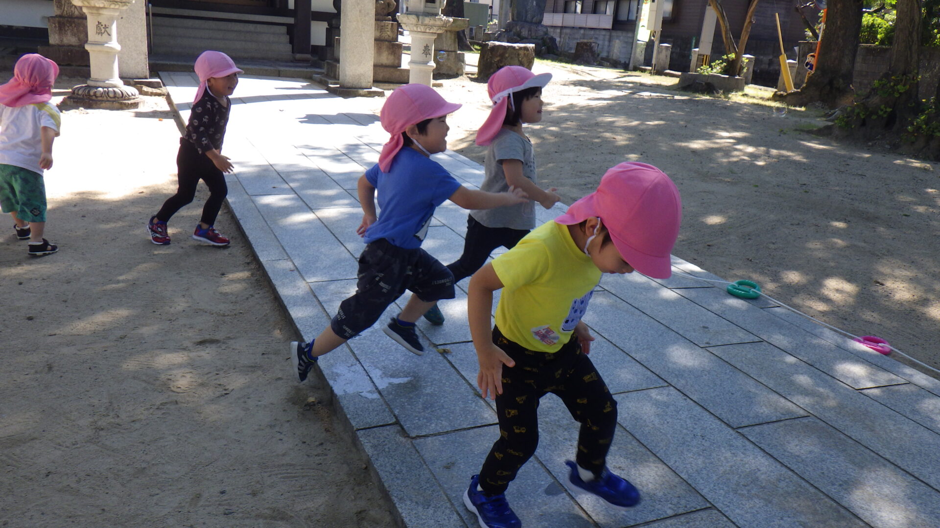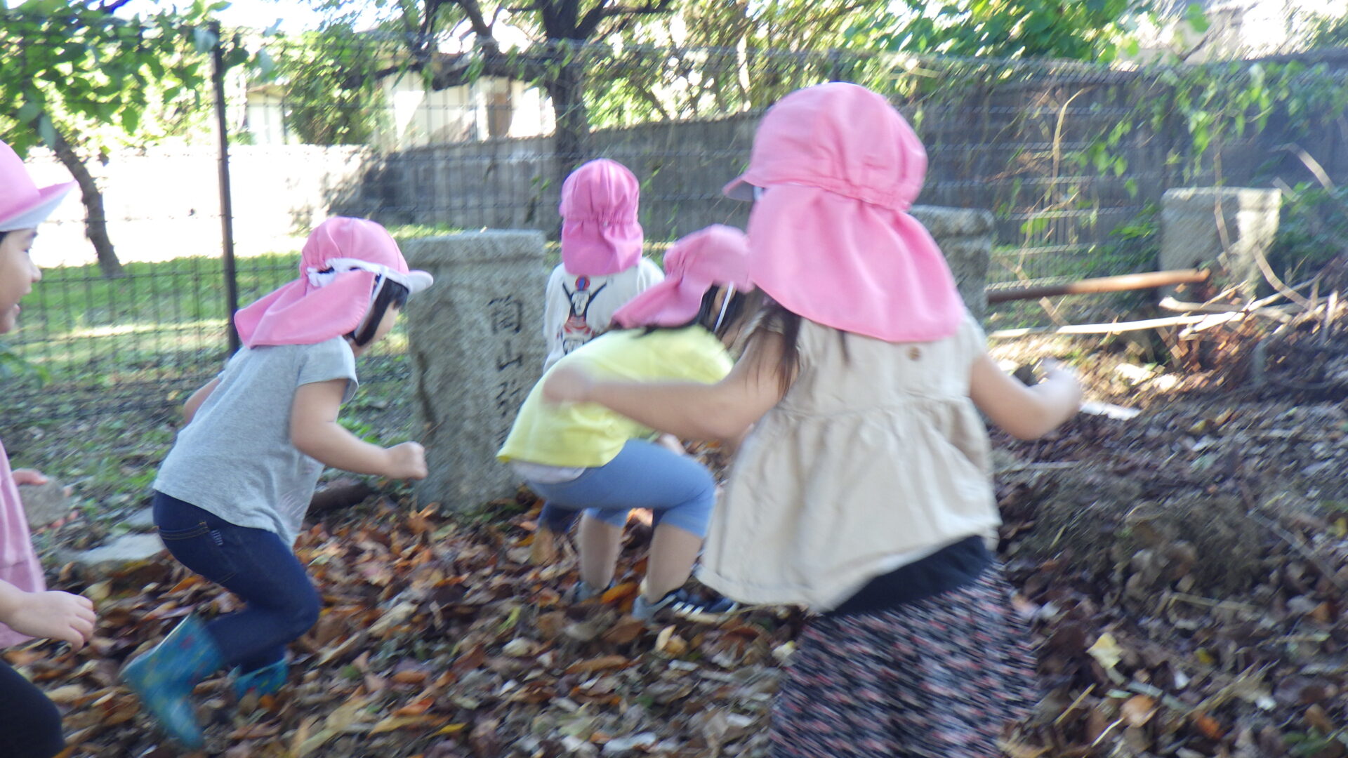 道中では、「涼しいね~」と心地よい風を感じたり、「緑色のみかんがなってる!」「ススキがあるよ!」とたくさんの発見があったりしました。