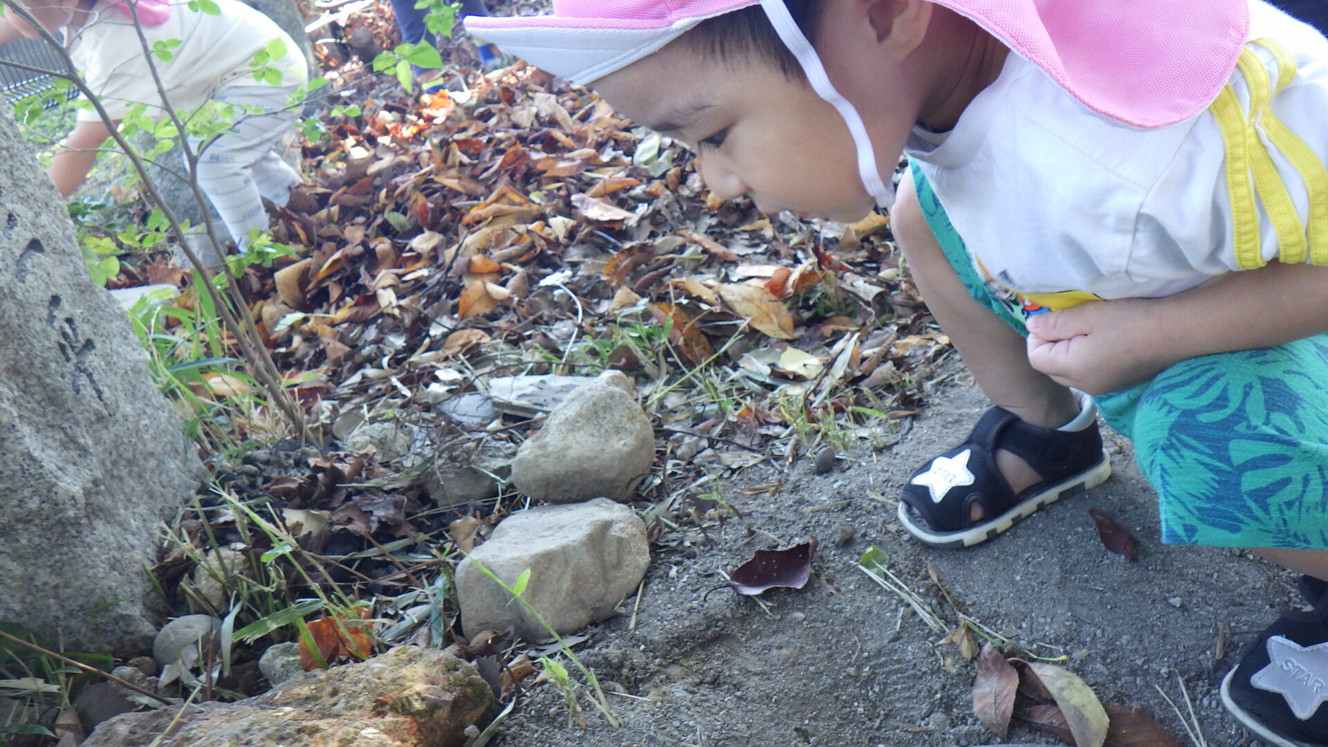 「ここに虫いるよ!」と教えてくれましたが、小さすぎて保育士には見えませんでした…(-_-;)