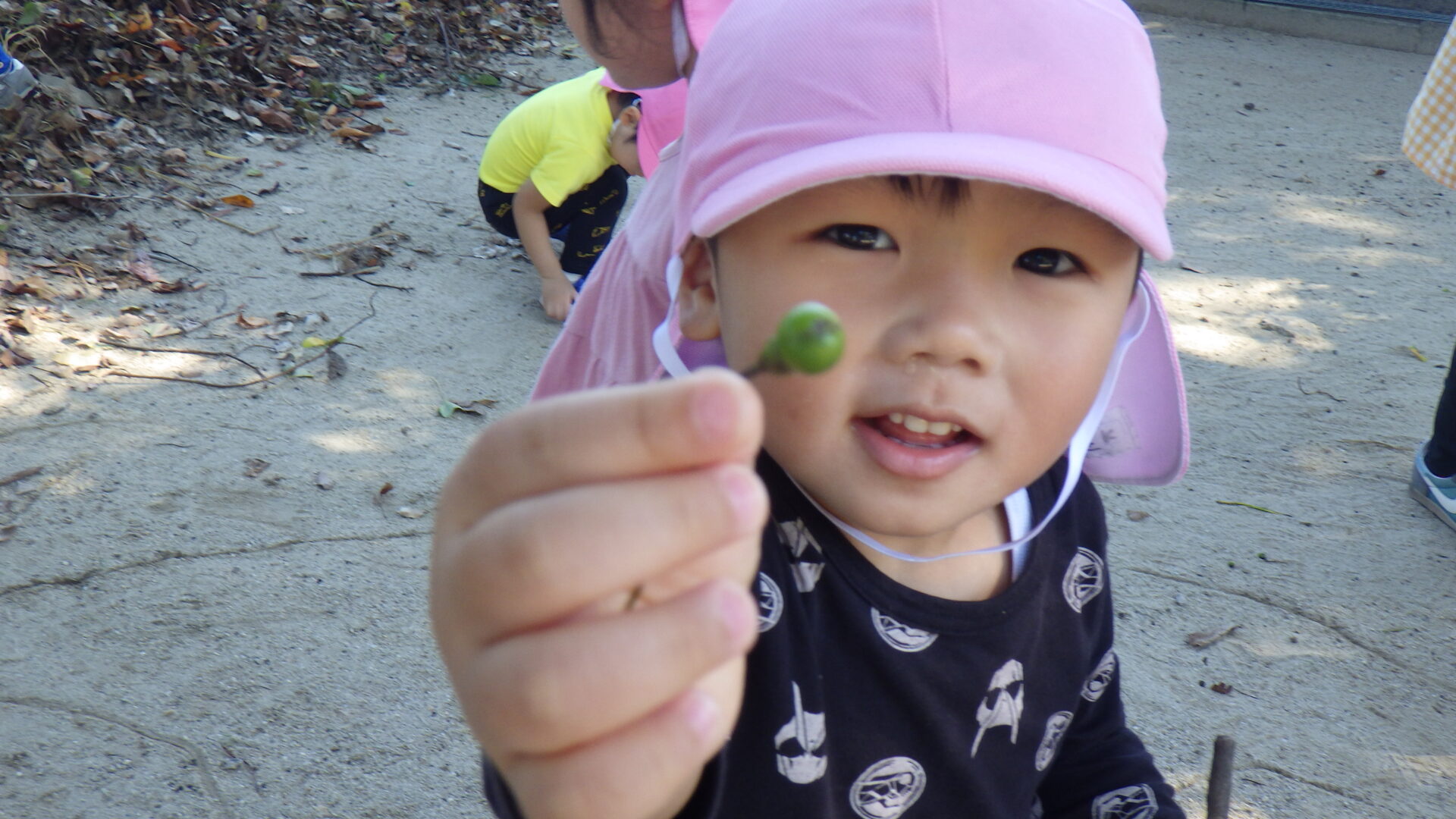 クスの実を見つけると、「枝豆があった!」「どんぐりよ!」と…子どもたちの発想は面白いです!