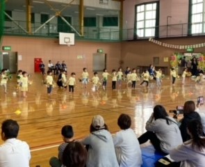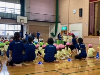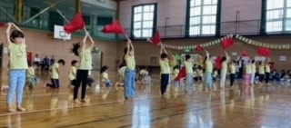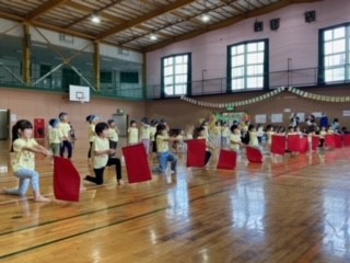 そら組は、バンダナを使い、体全体でダンスを披露し、くじら組は、フラッグを使って息の合った演技を披露しました。