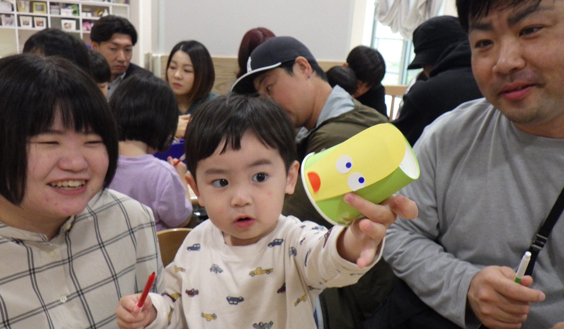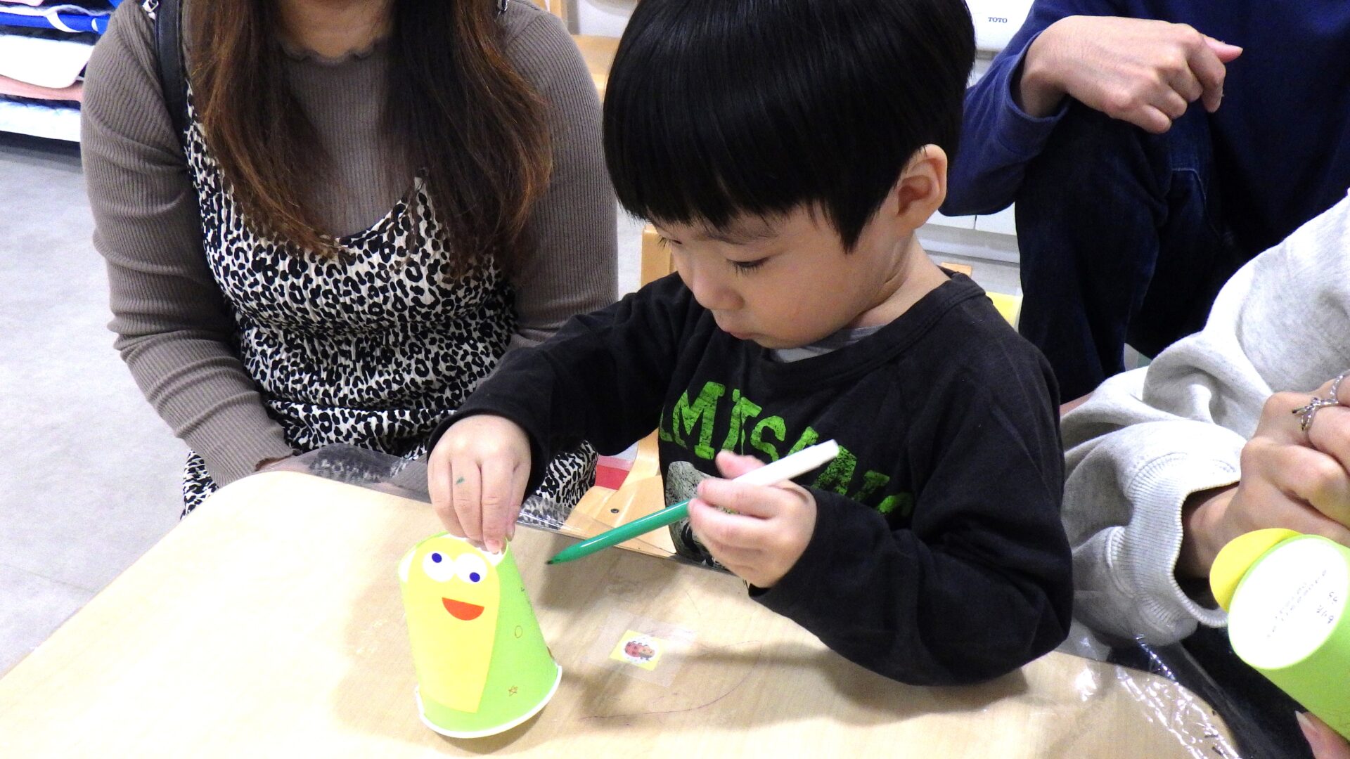 「ママも一緒に描こうよ!」と、ペンを渡してあげる姿もありました。