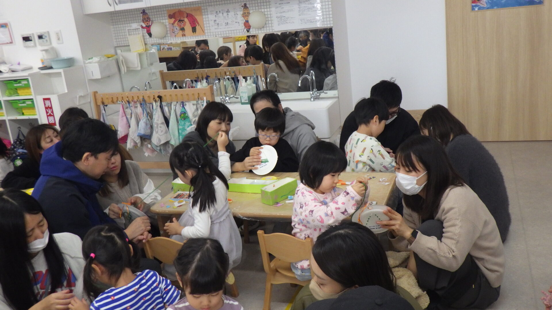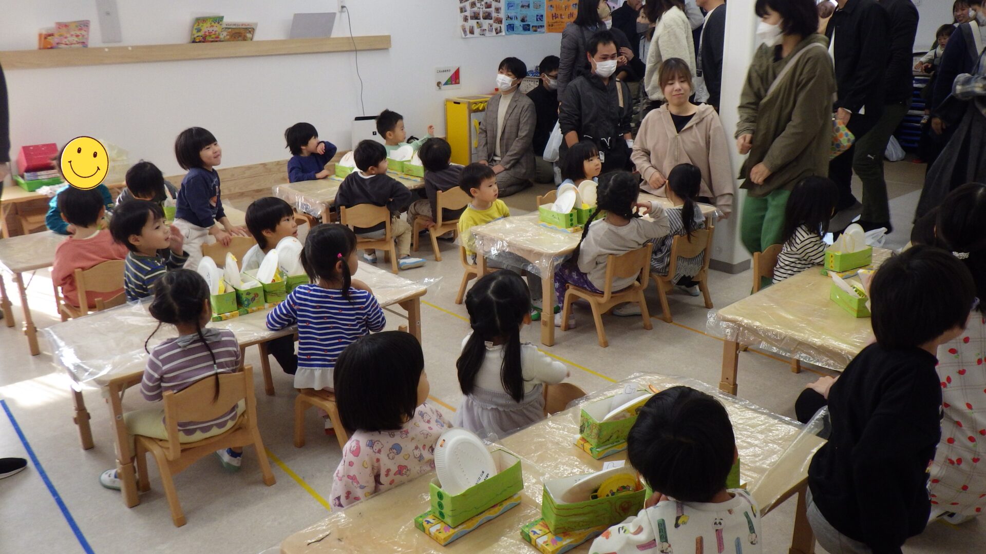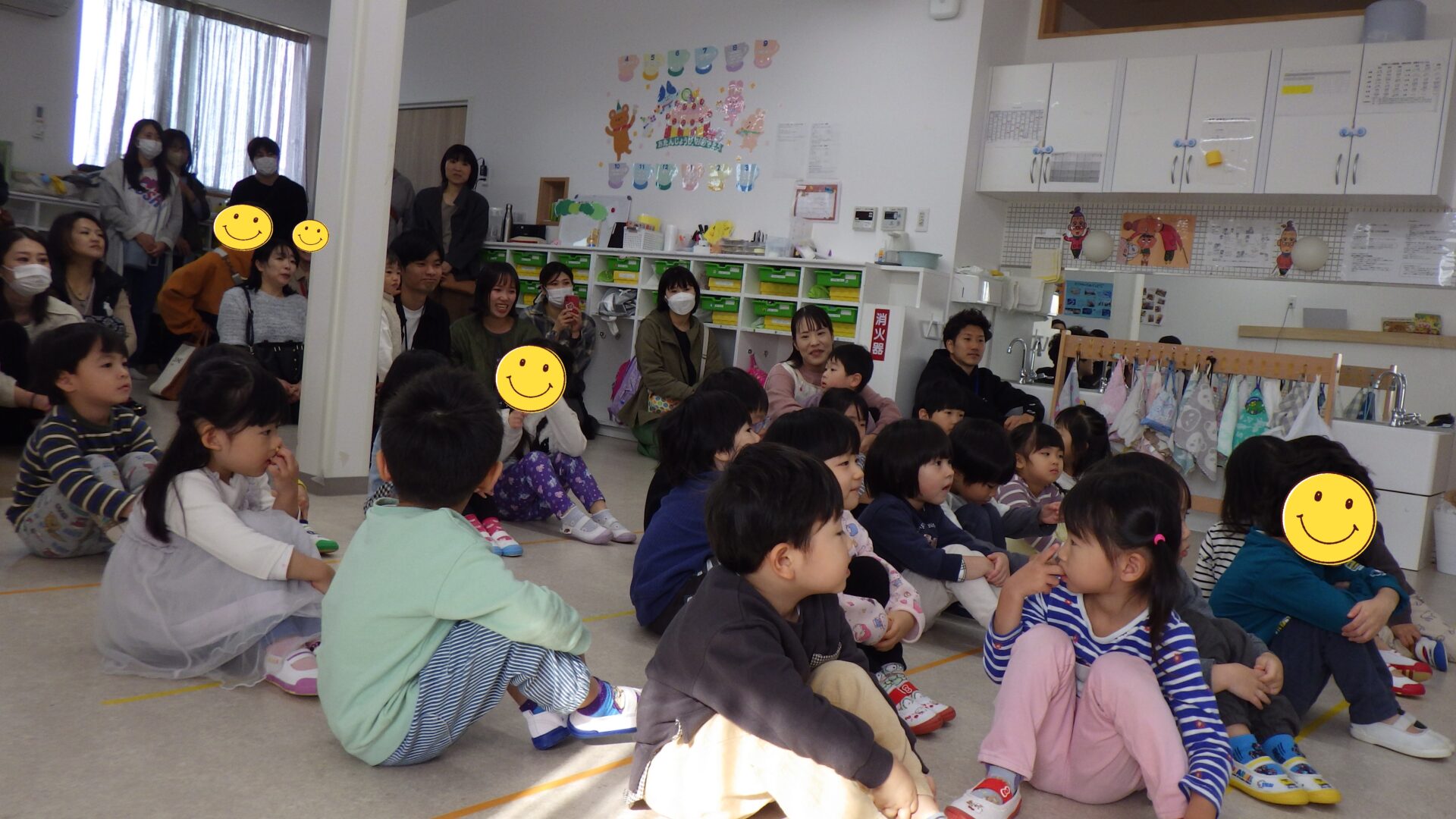 今日は、たくさんの保護者の方々が特別に保育園に遊びに来てくれました。