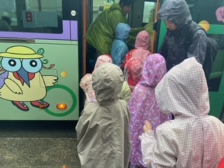 バス停で、コミュニティバスが来るのを待ちました。みんなの得意な「しりとり」をしながら・・・😊