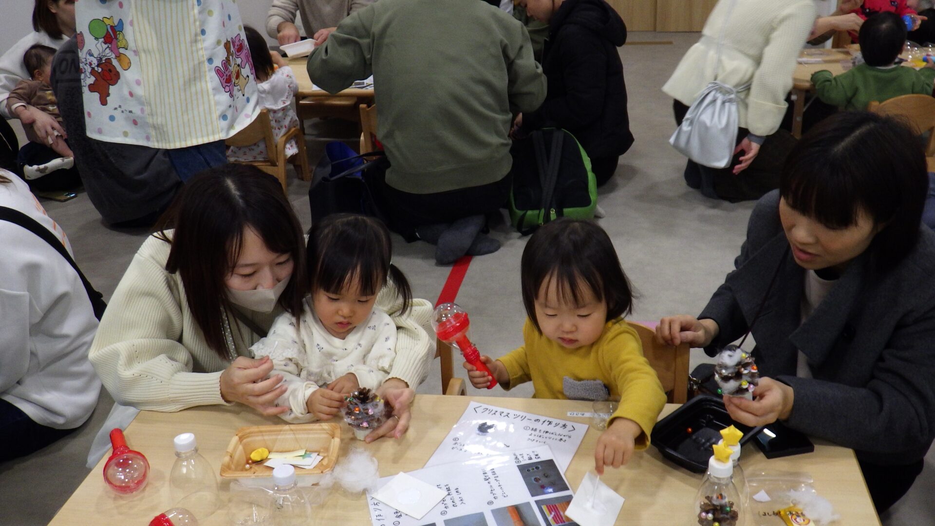家族みんなでツリーを作り上げていますね!