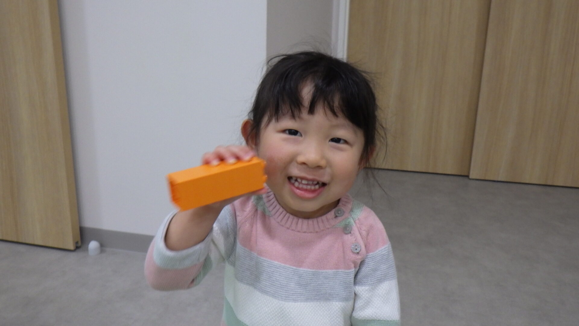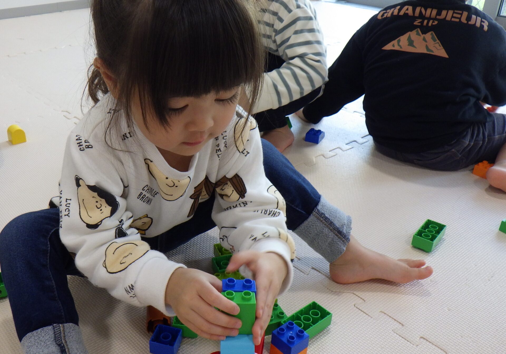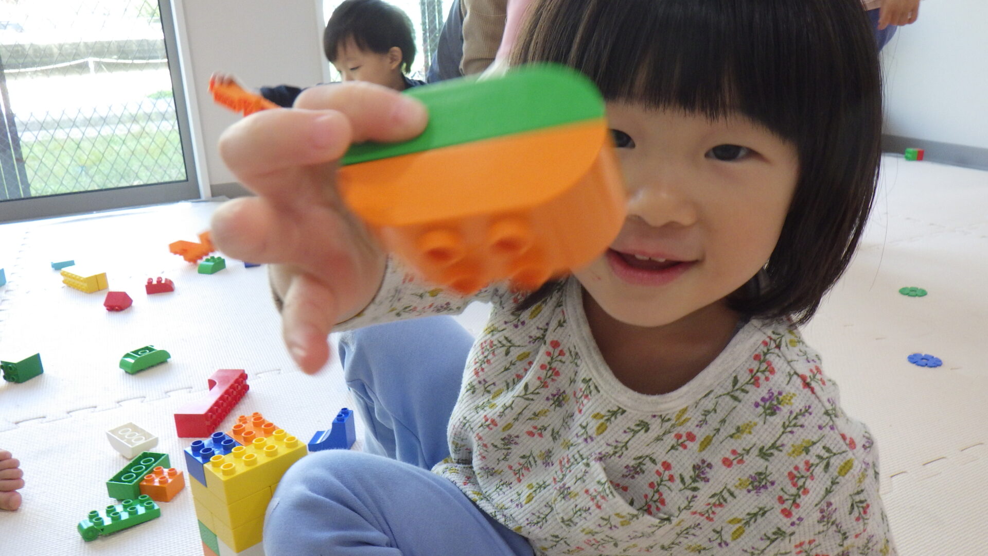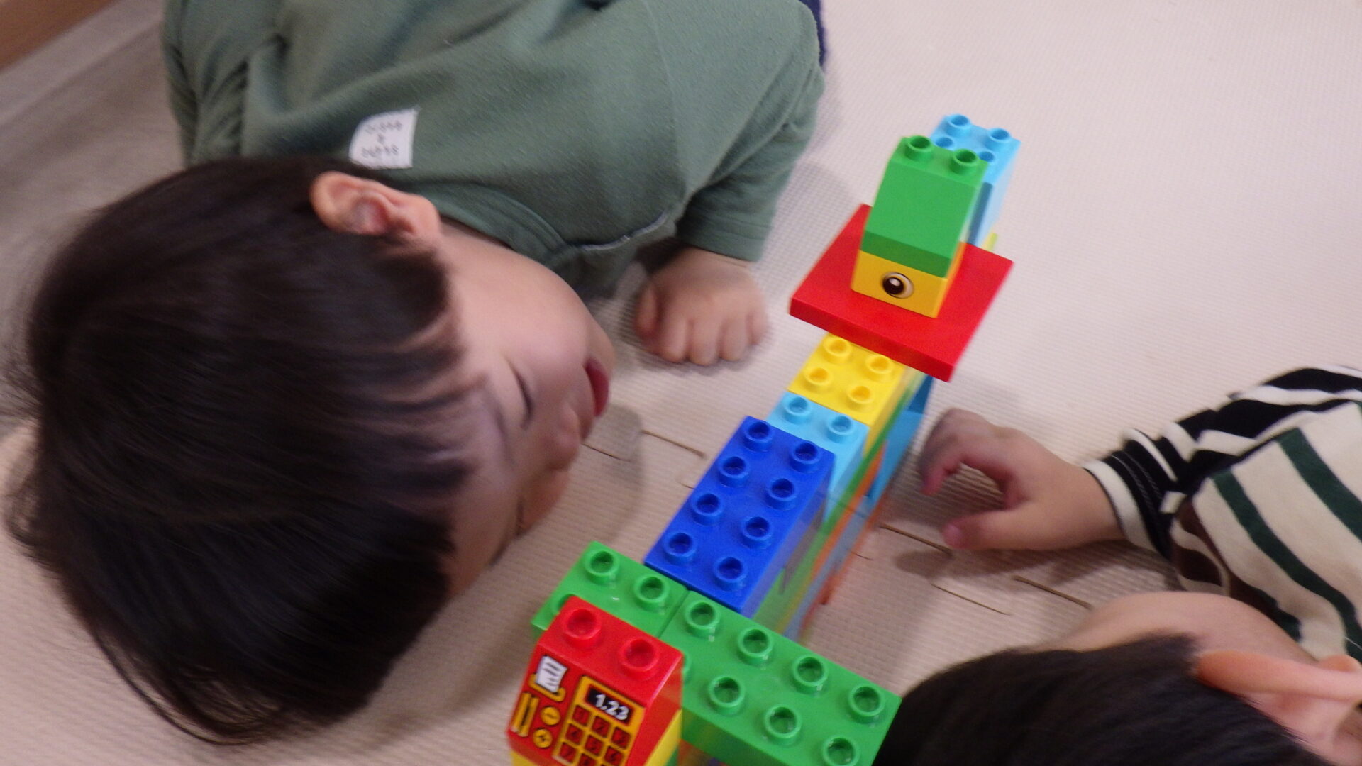 今回は、あめ組(2歳児)の子どもたちが大好きな『ブロック遊び』を紹介します。