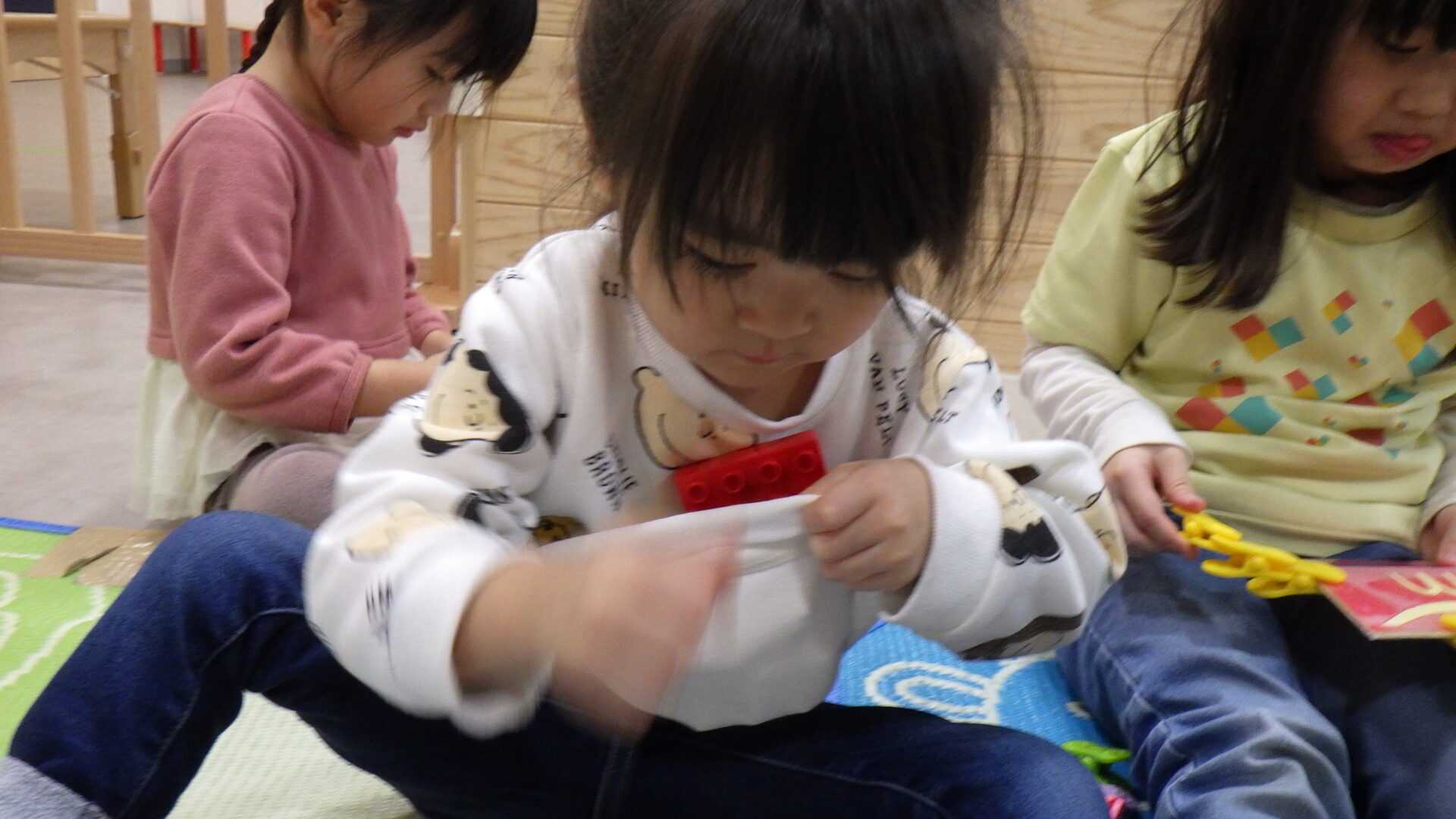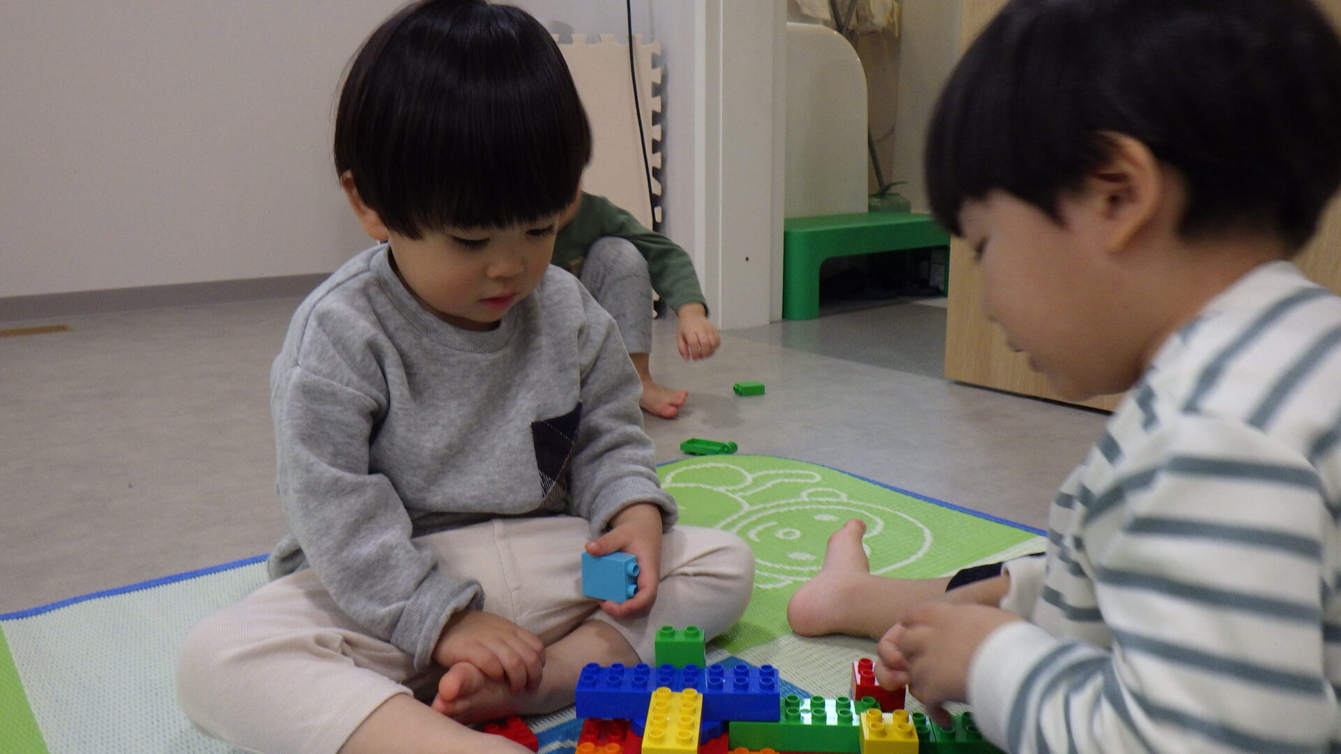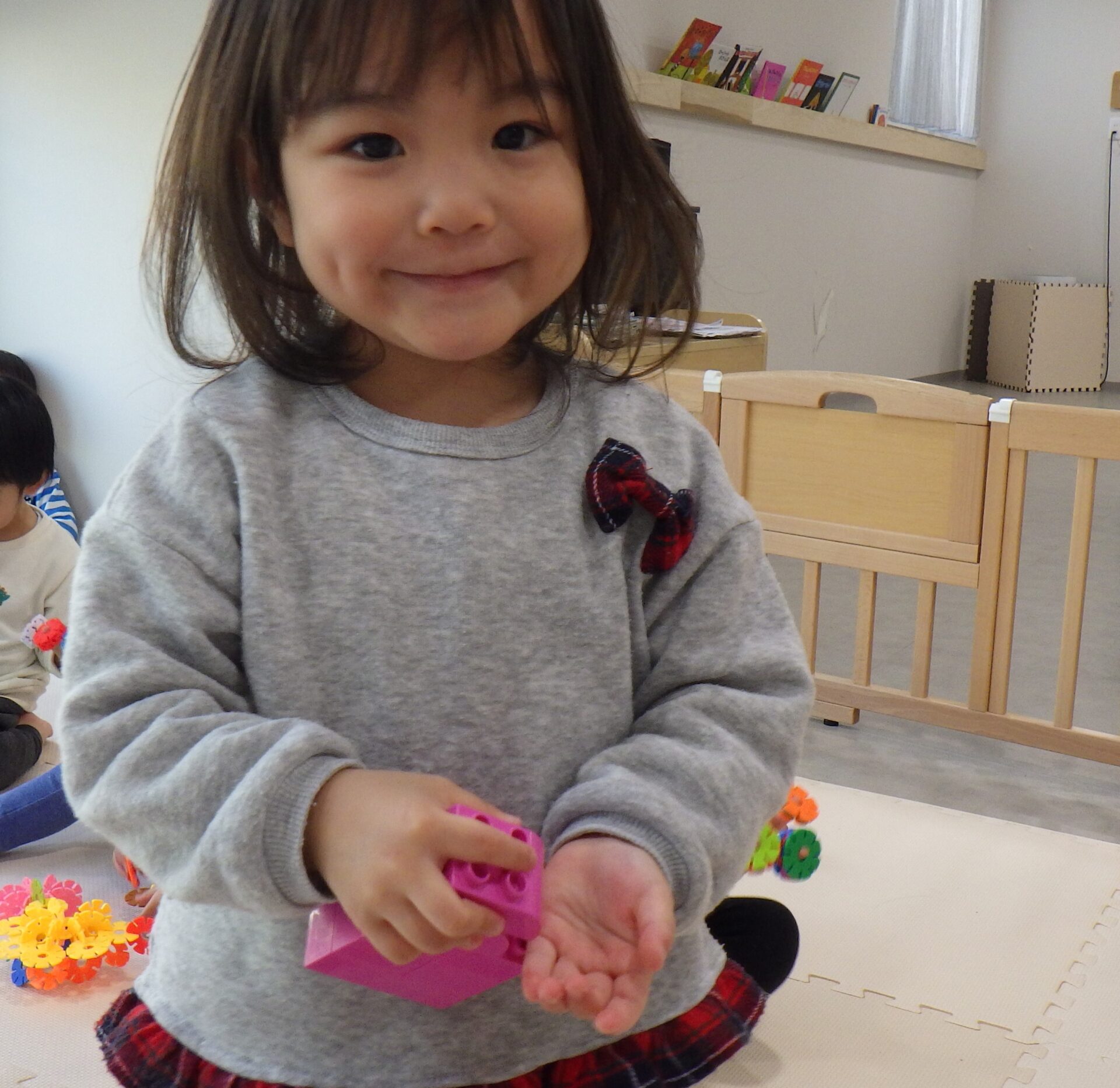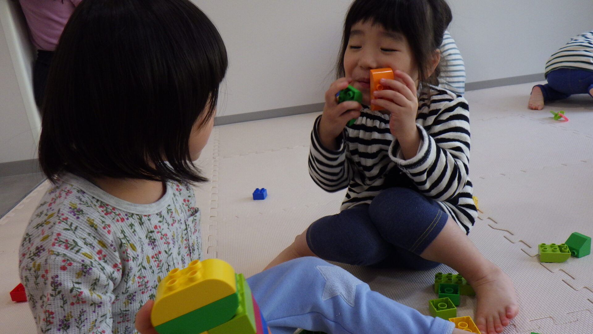 今回は、あめ組(2歳児)の子どもたちが大好きな『ブロック遊び』を紹介します。