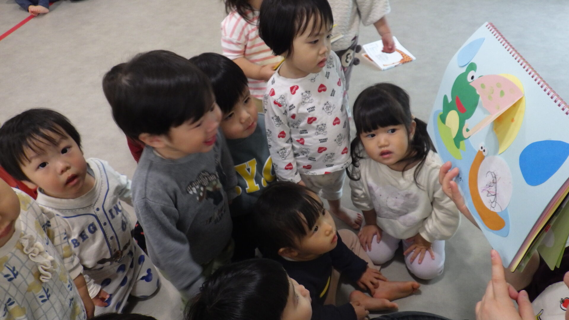 「かえるー」と大きな声で答える子どもたち!!