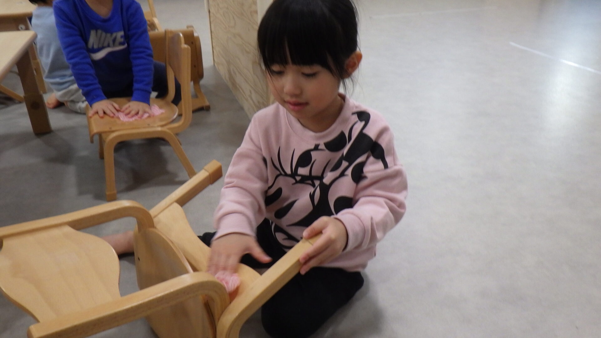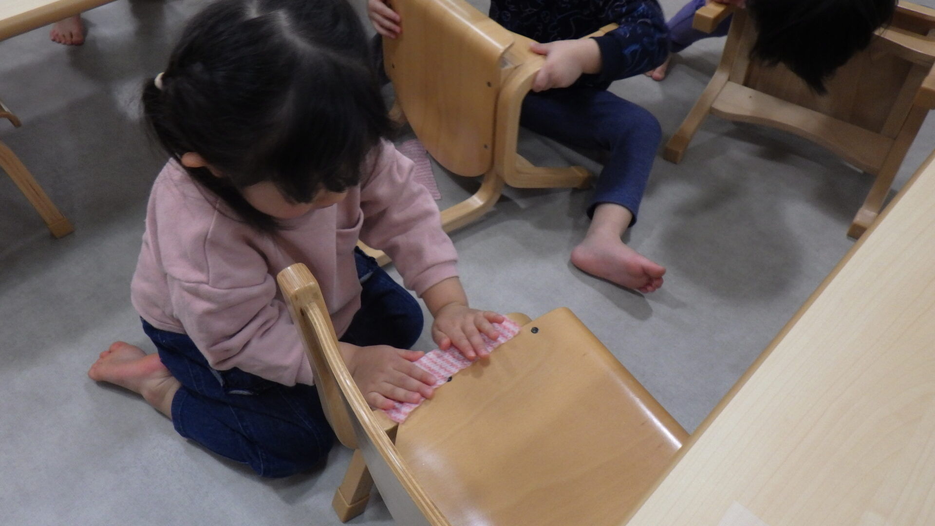 次は、濡れタオルを渡して、椅子をキレイにしました✨