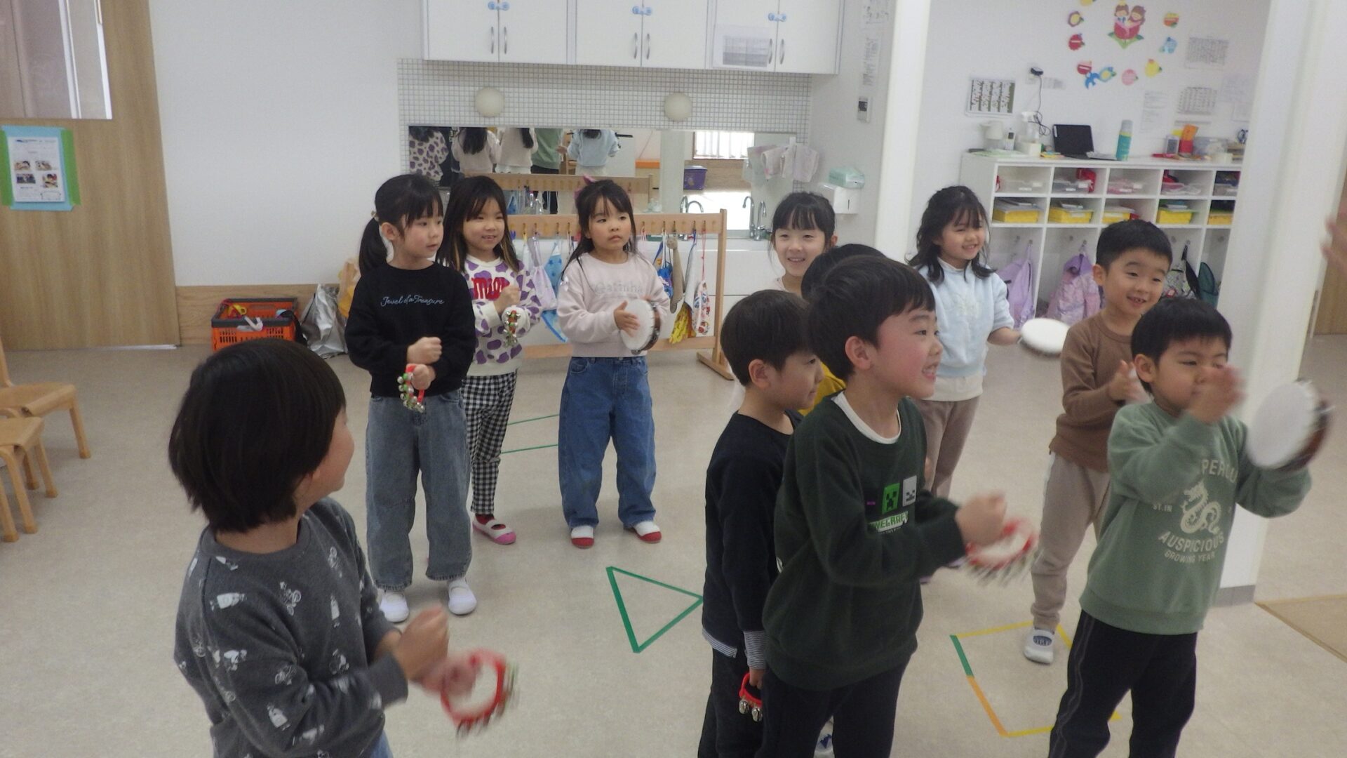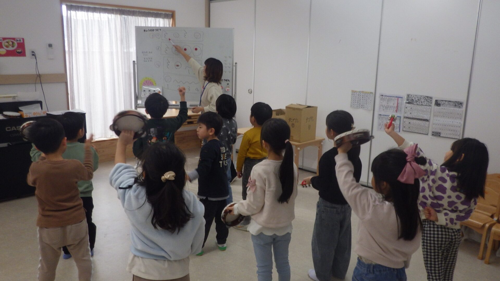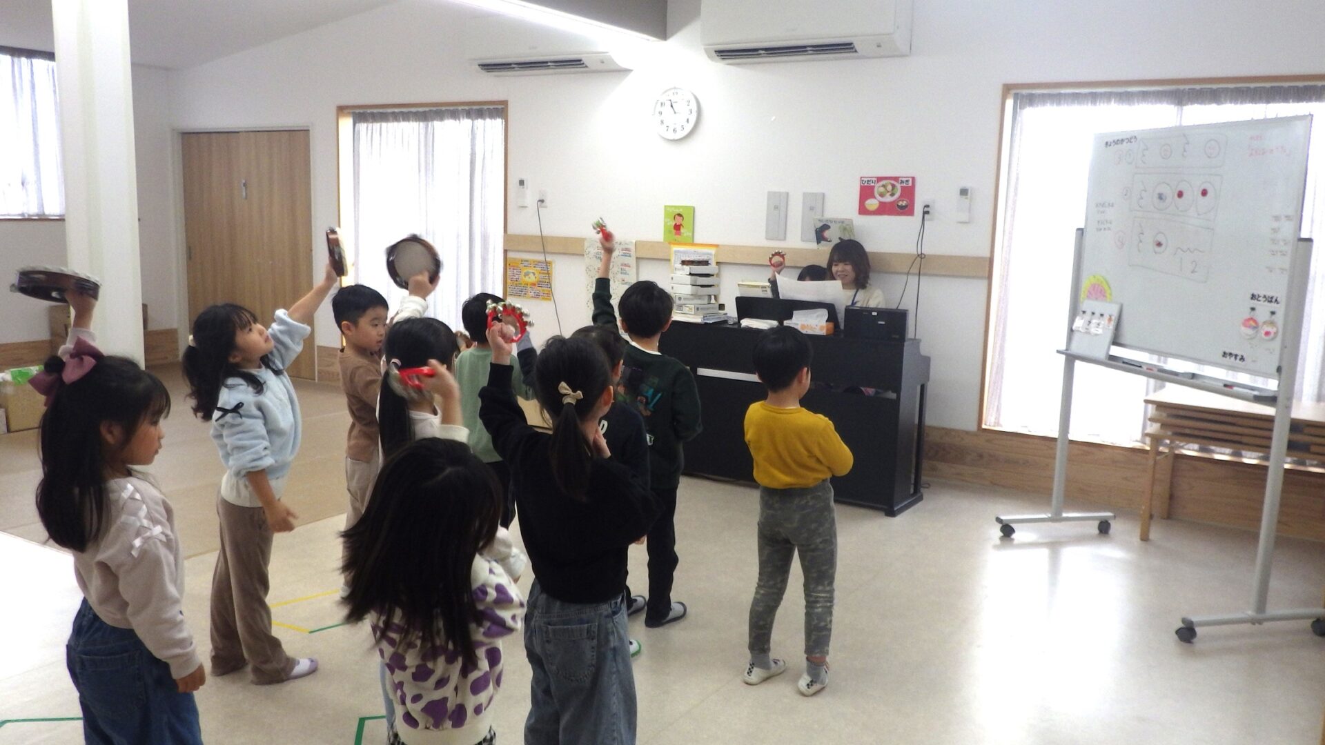 最後はみんなで練習をしたリズムで、ピアノと保育士の合図に合わせて上手に演奏することが出来ました!