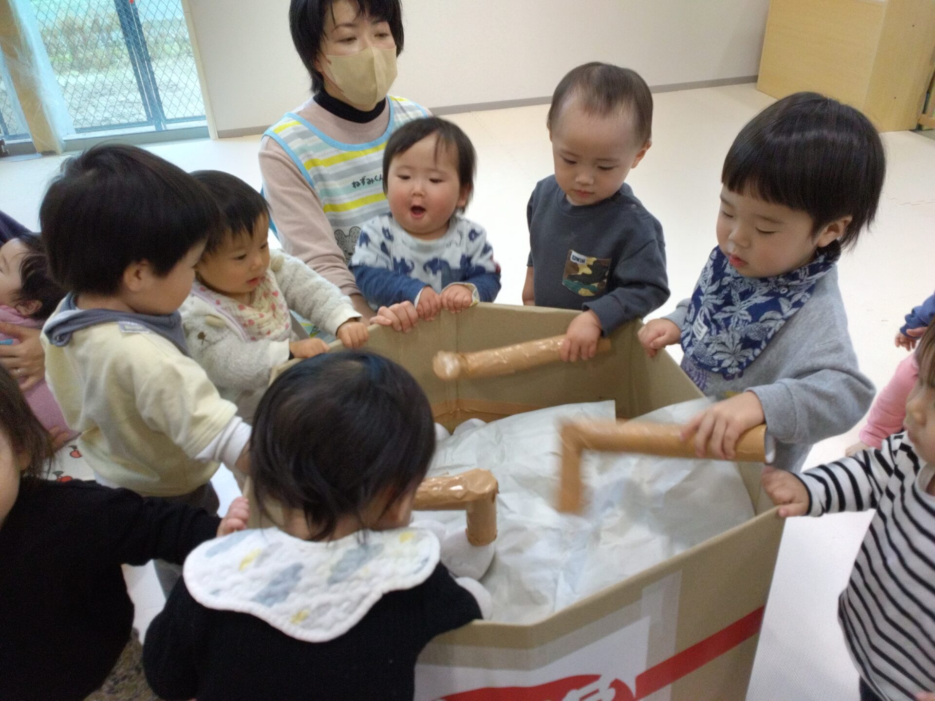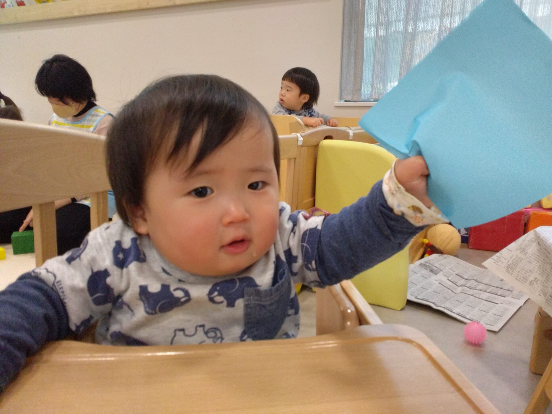 そんな中、お正月遊びを楽しんでいるうみぐみ(0歳児)の様子を紹介したいと思います♪♪♪