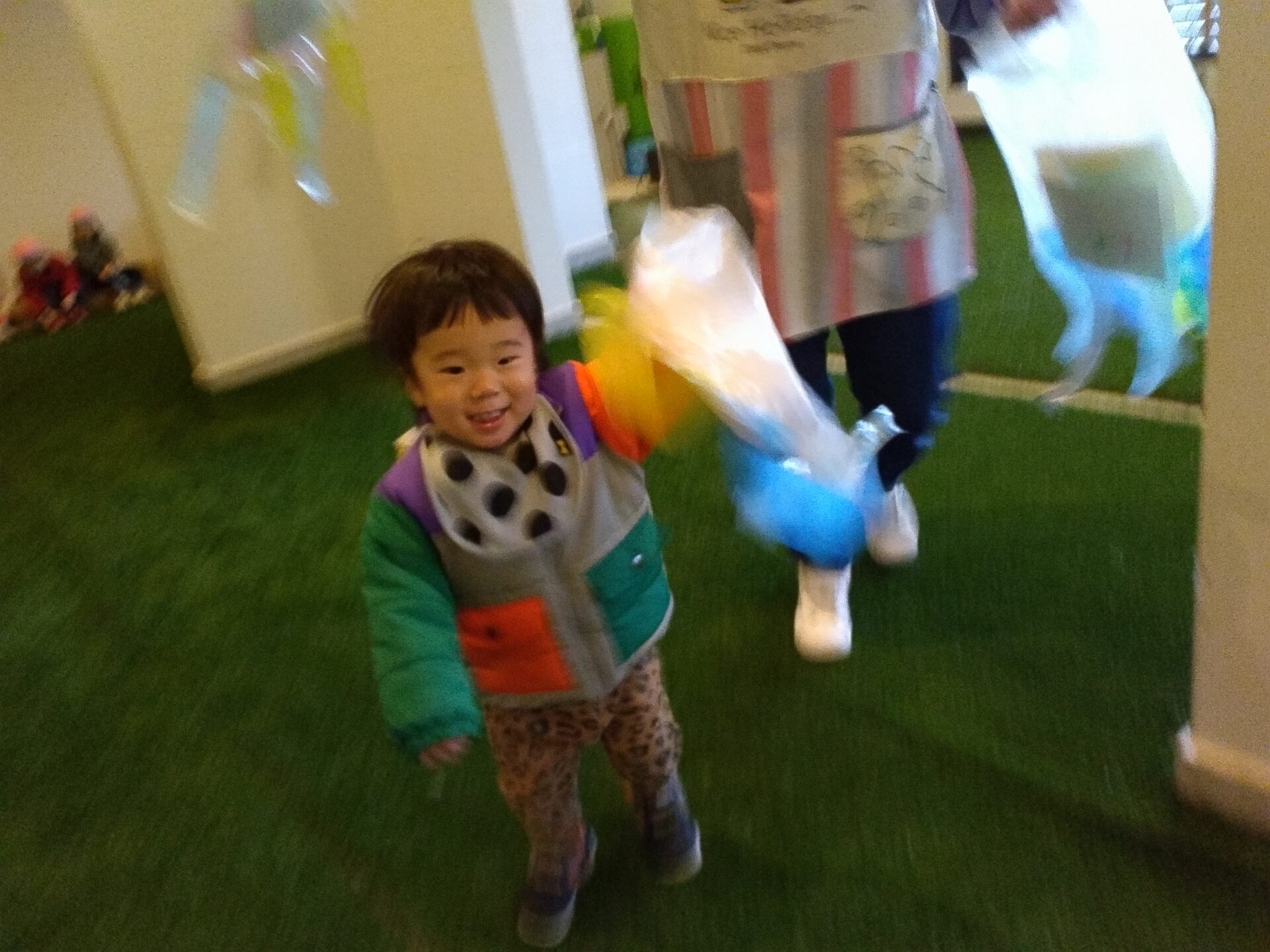 凧を持ち元気に走る回る子もいれば、フリフリと左右に動かし嬉しそうにしている子もいました。