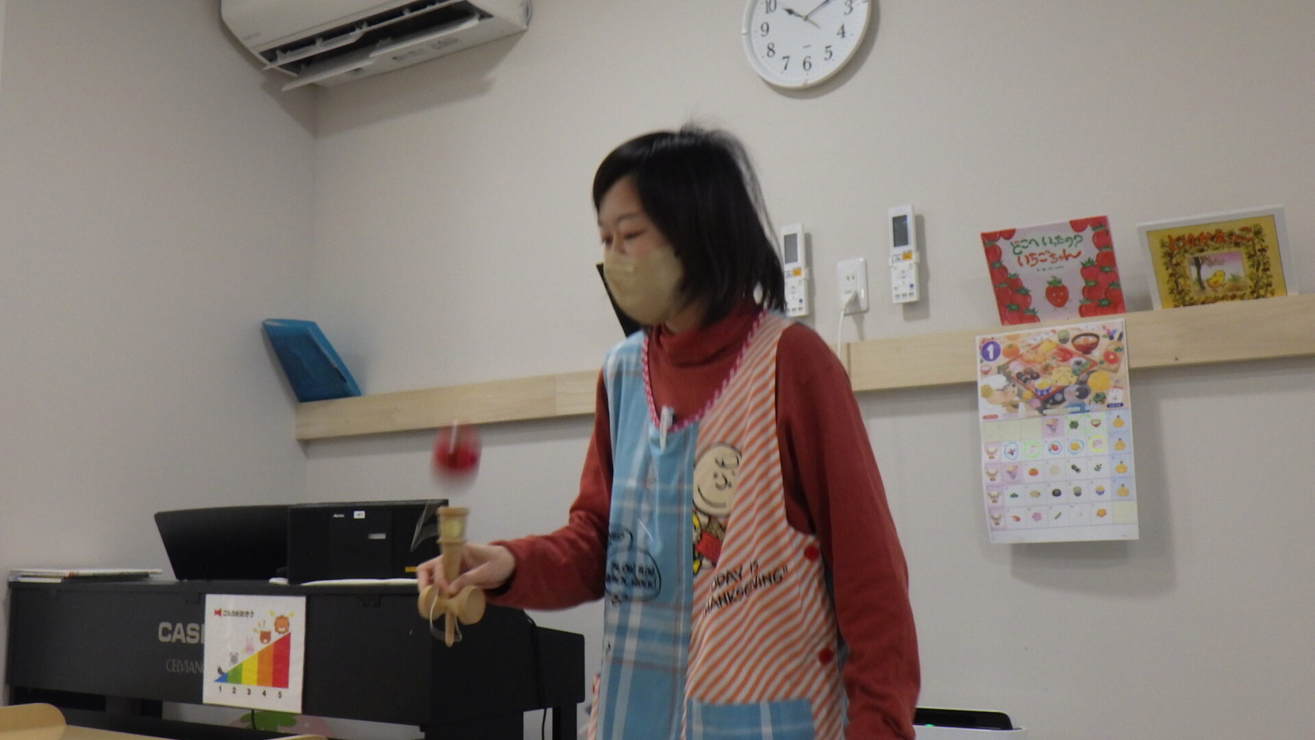 今日は、お正月遊びのひとつ『けん玉』で遊びました。
