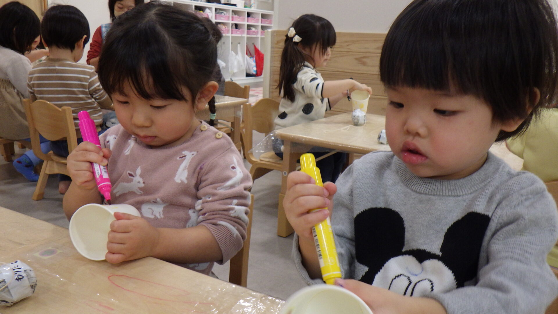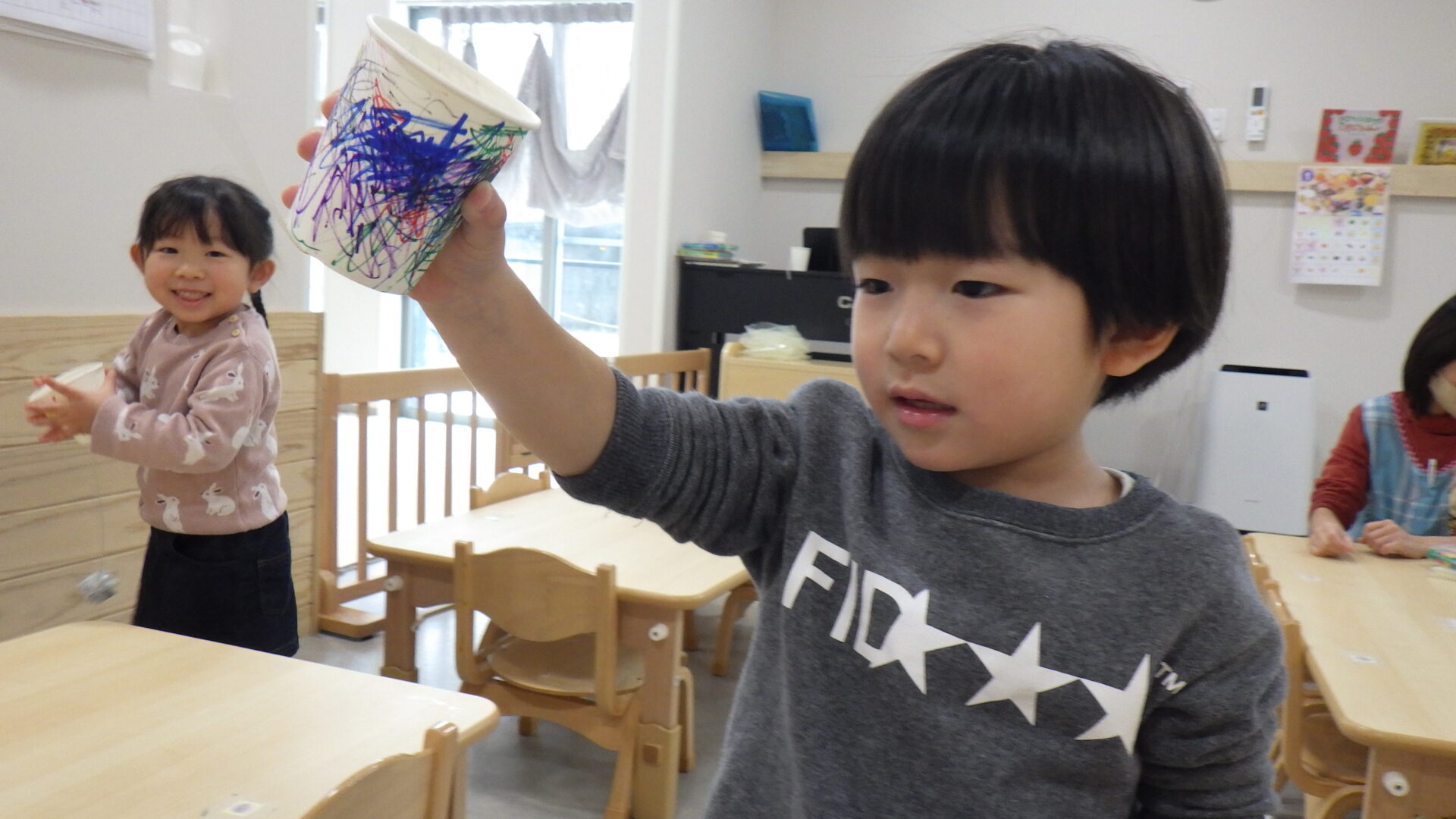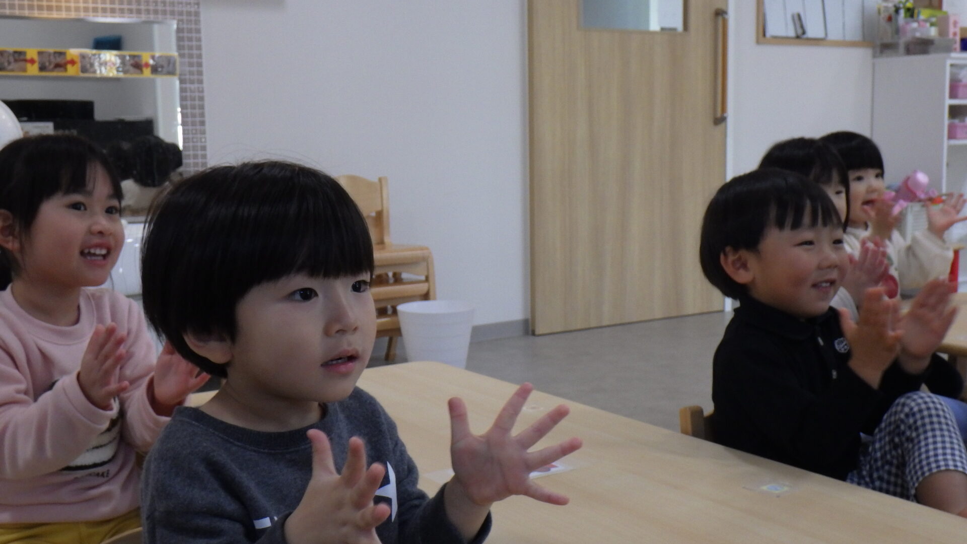 年末年始休みのお話をたくさんしてくれたあめ組(2歳児)の子どもたち。