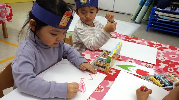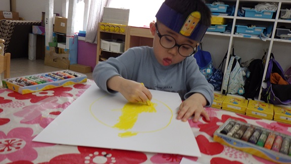 お面をつけて、クレヨンに変身☆
