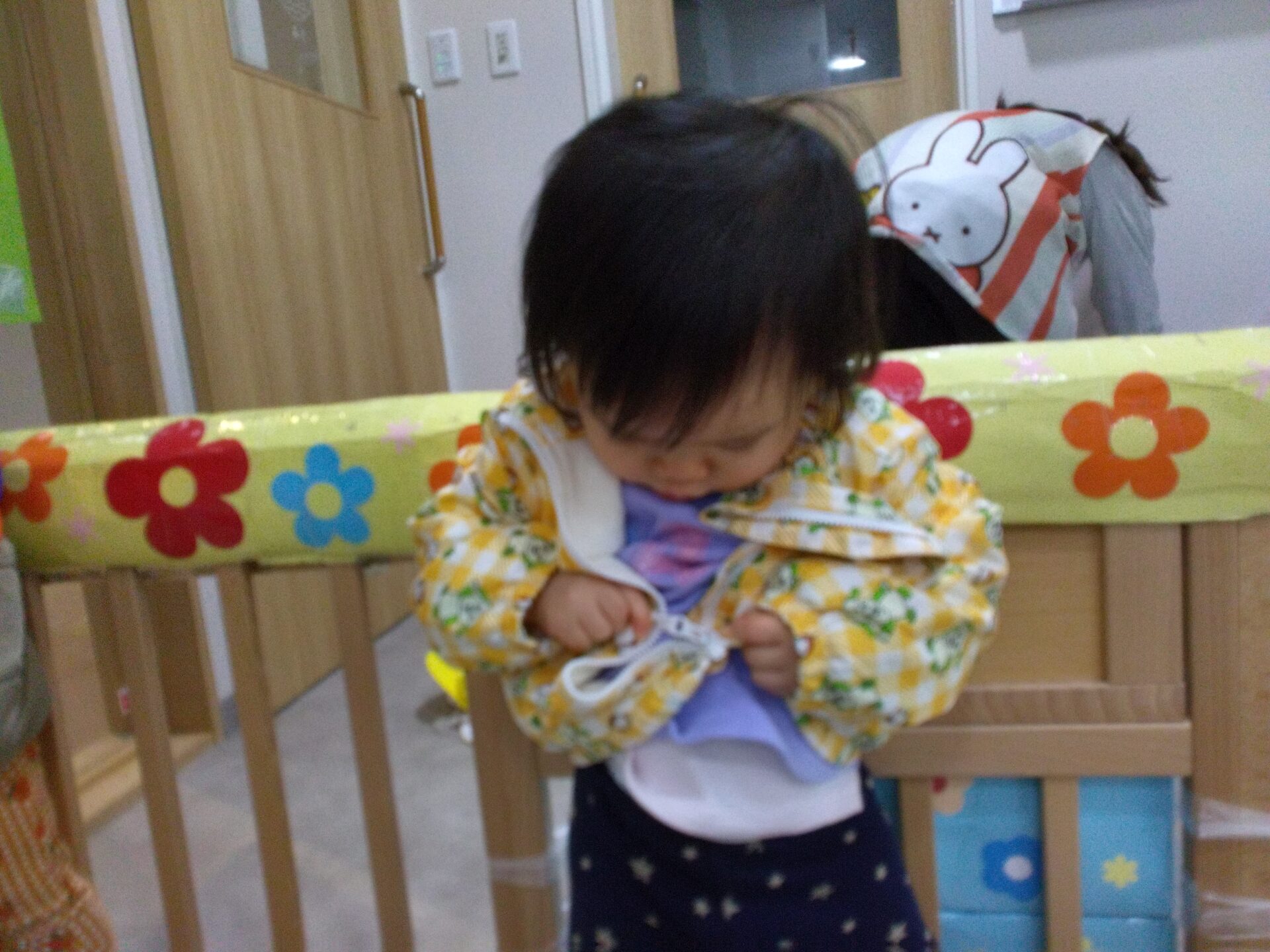 まずは、園庭に出る前にジャンバーを着ます👚チャックは、”自分でできるモン♪”