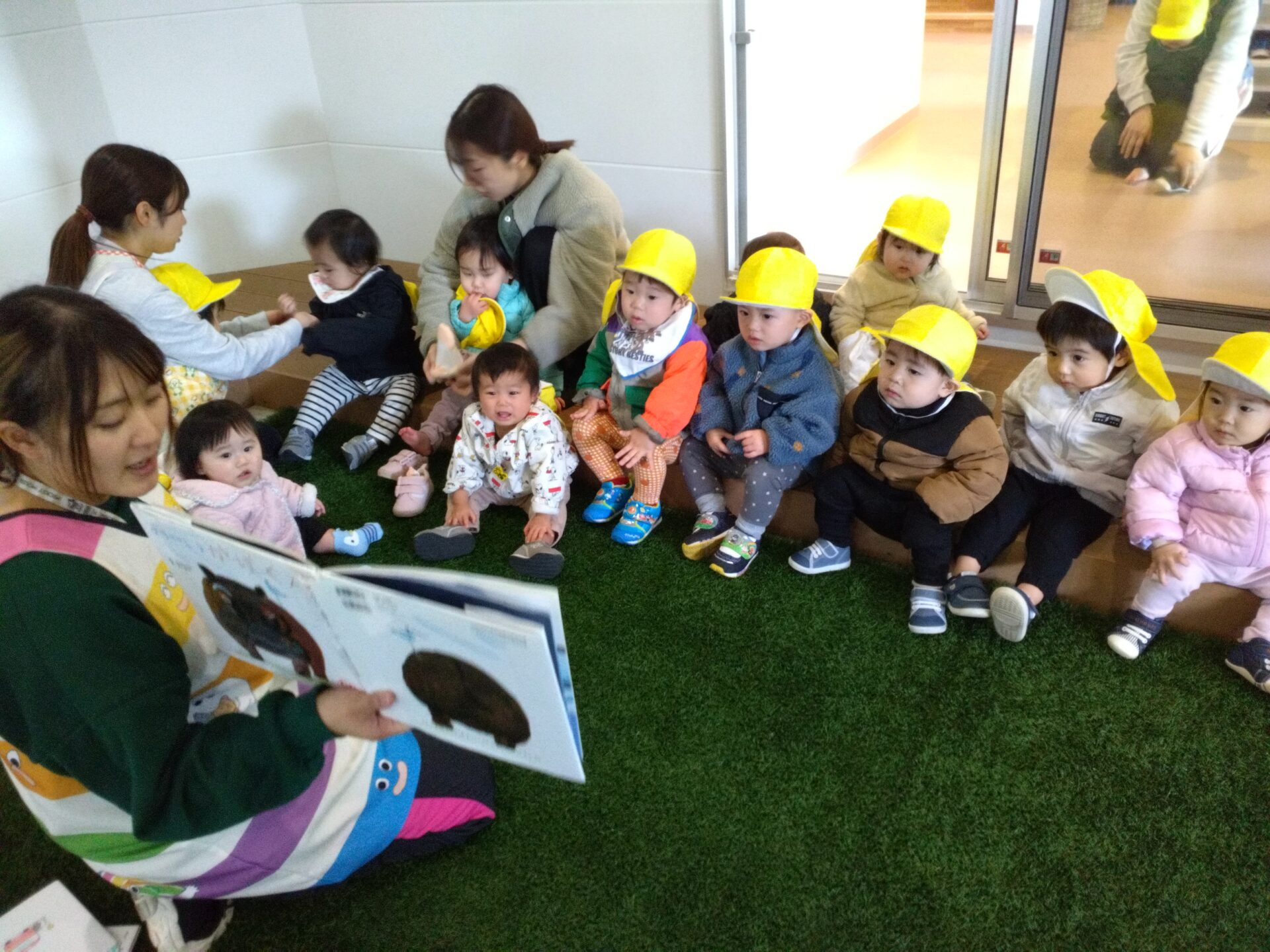 園庭に着いて、みんなが集まるまでは・・・絵本タイム📖