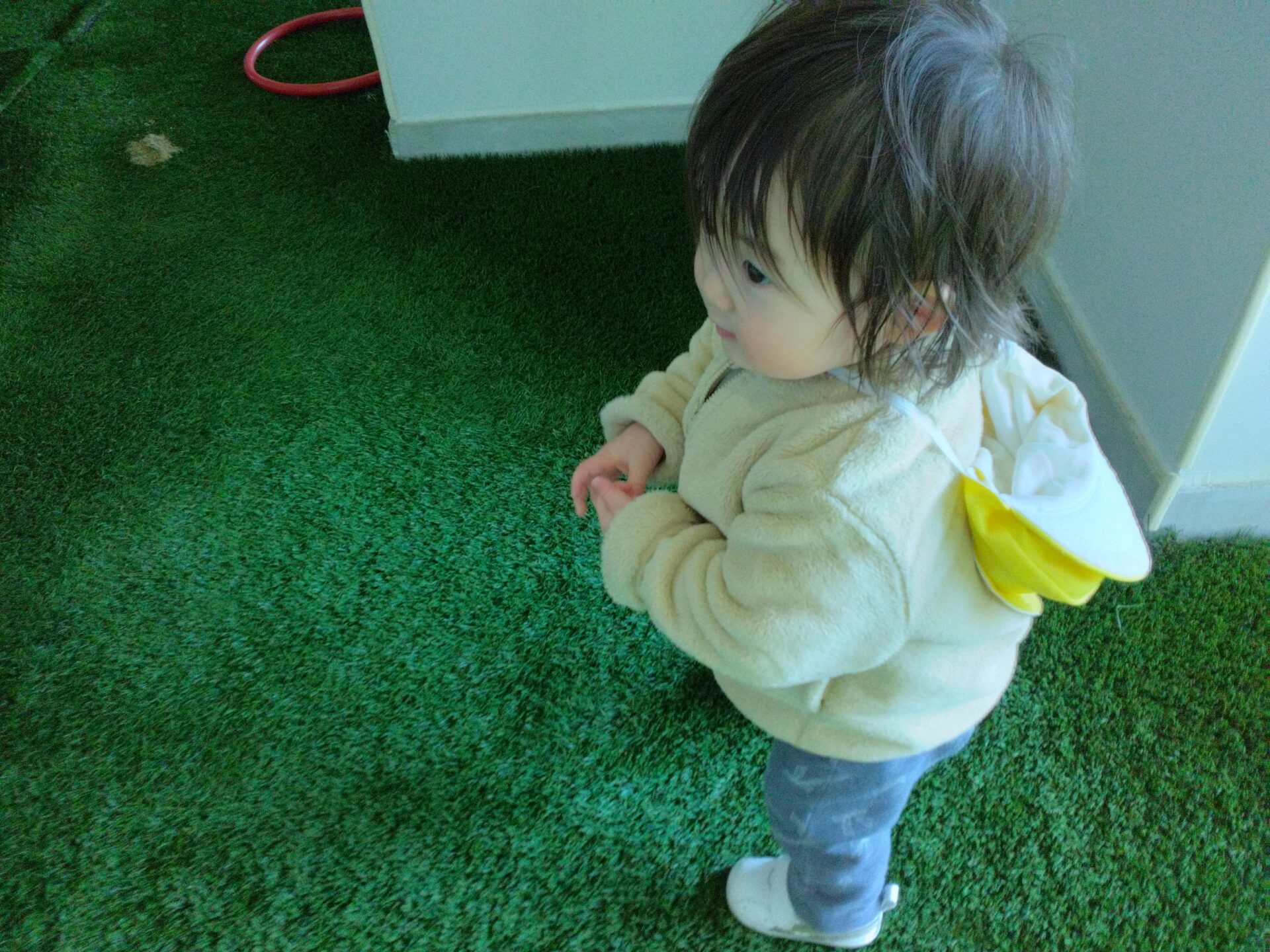 最初はみんな、チクチクする人工芝の感触も嫌がりますが、少しずつ慣れていきます!