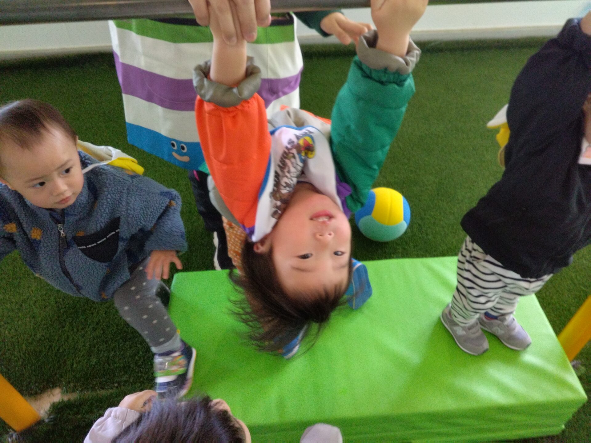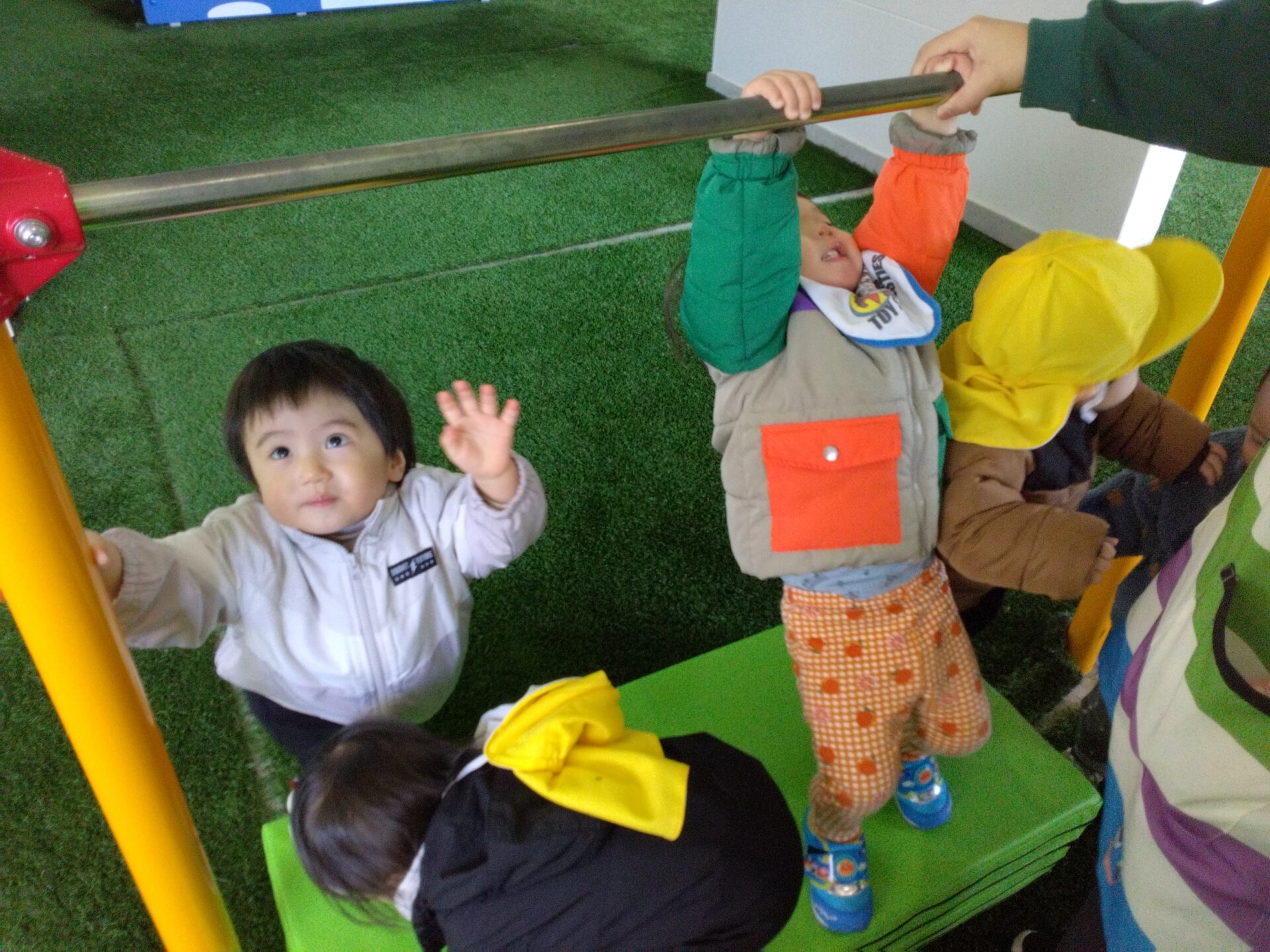 先生の手助けや高さをつけるマットも必要ですが、鉄棒も~??
