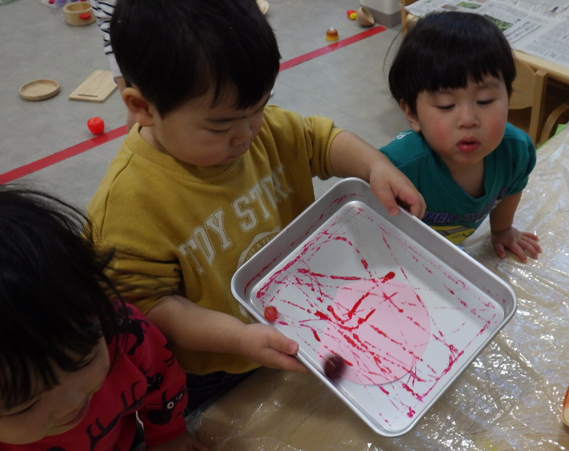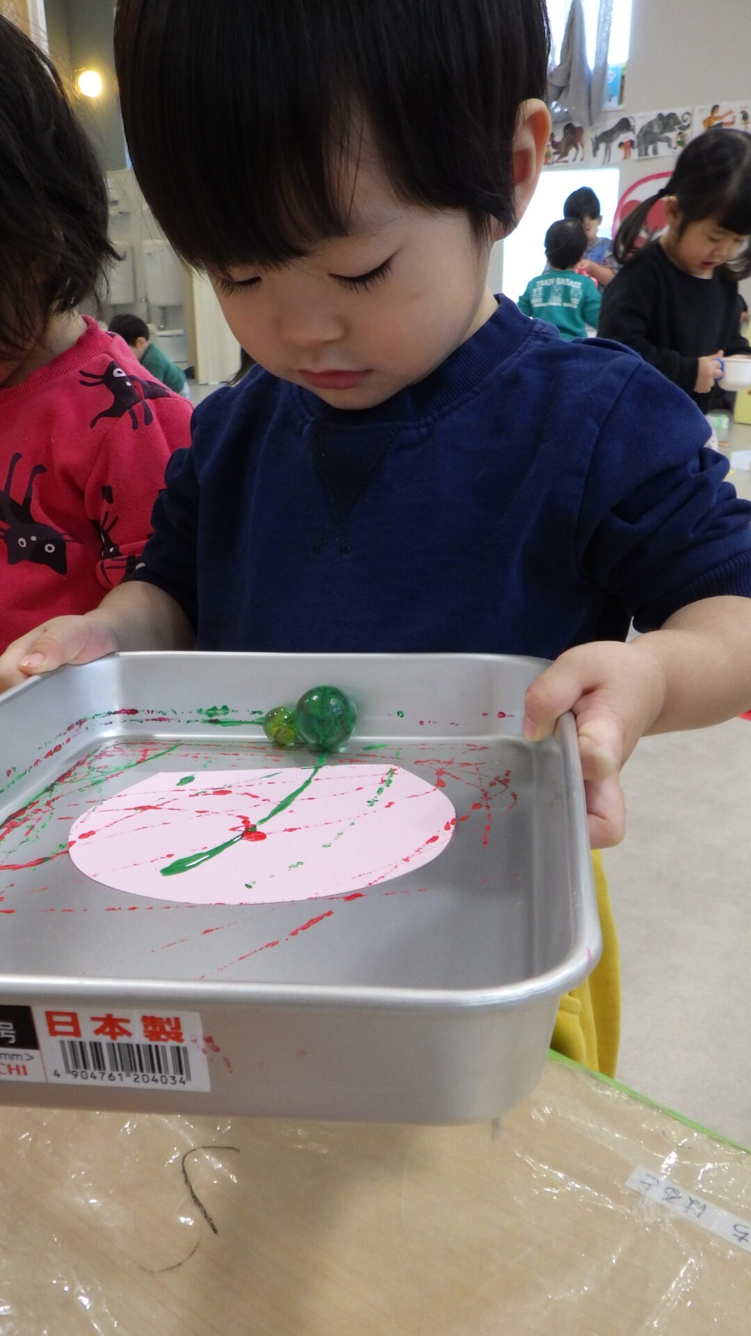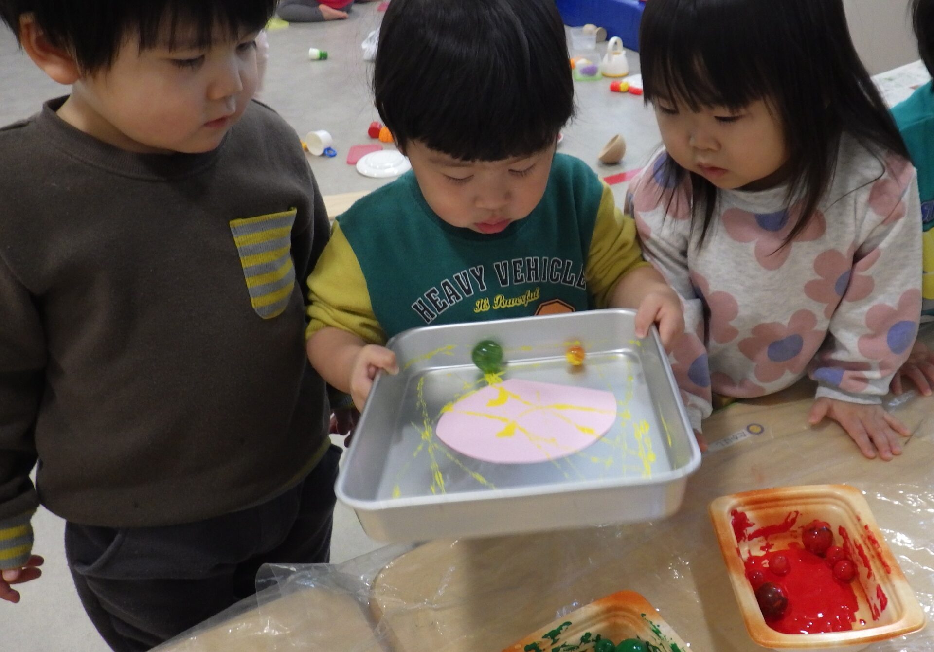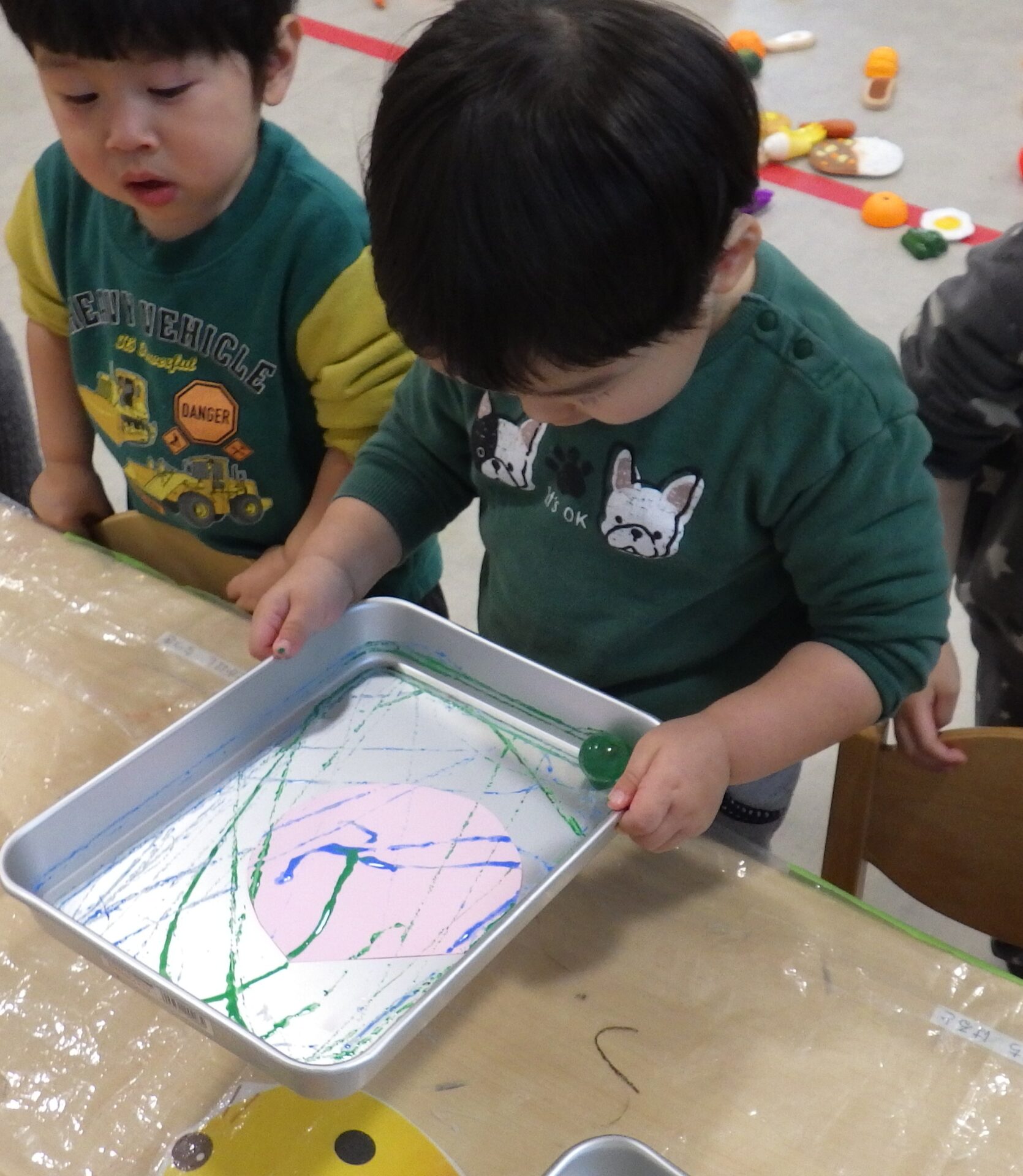 沢山ビー玉を転がして色をつけ、嬉しそうな子どもたち!!