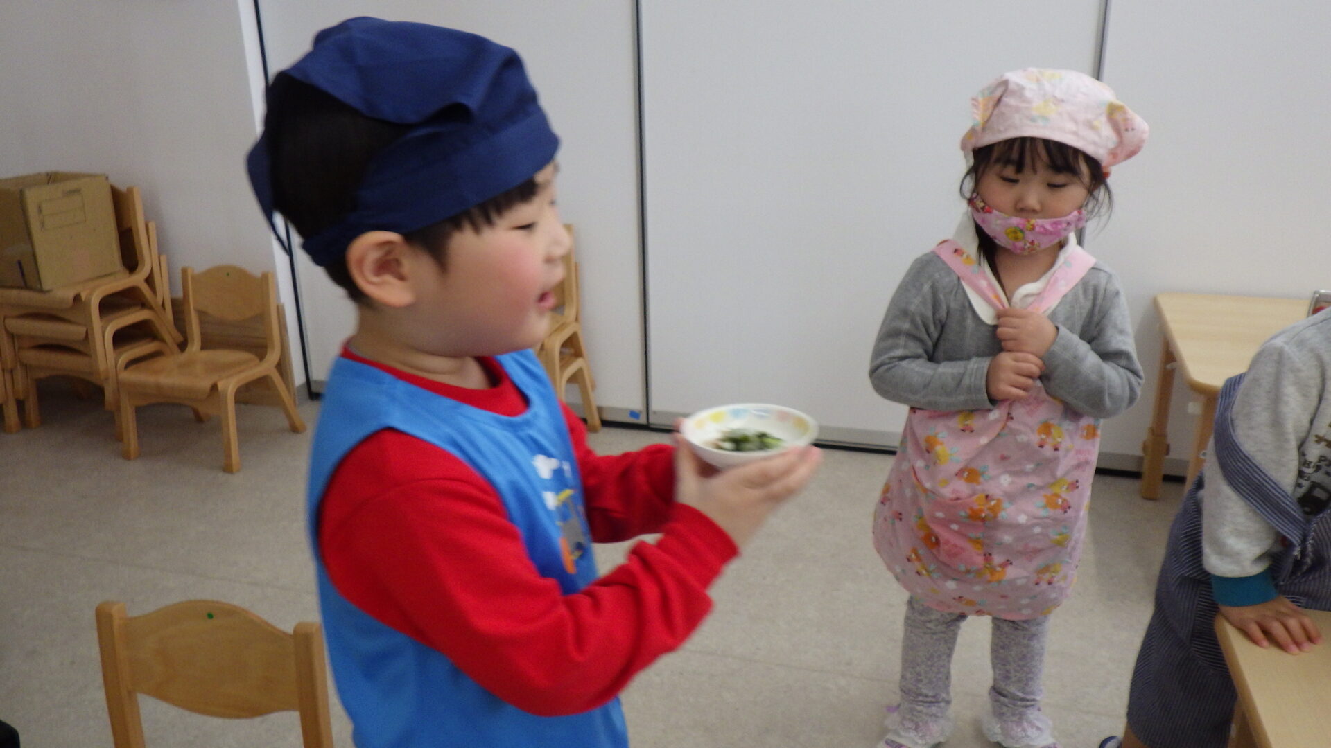 もうすぐで4歳児クラスに進級するにじ組だからこそできるんです(^▽^)