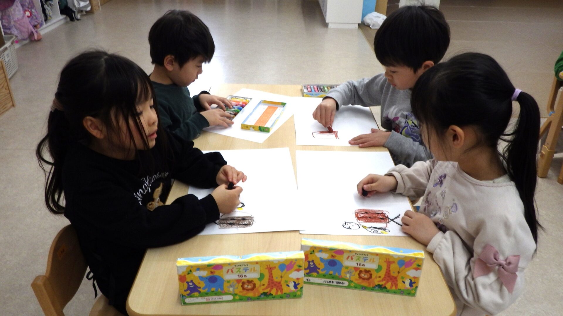 先日くじら組(5歳児)、保育園生活最後の発表会があり、みんなで頑張った思い出を描いて発表をしました♪