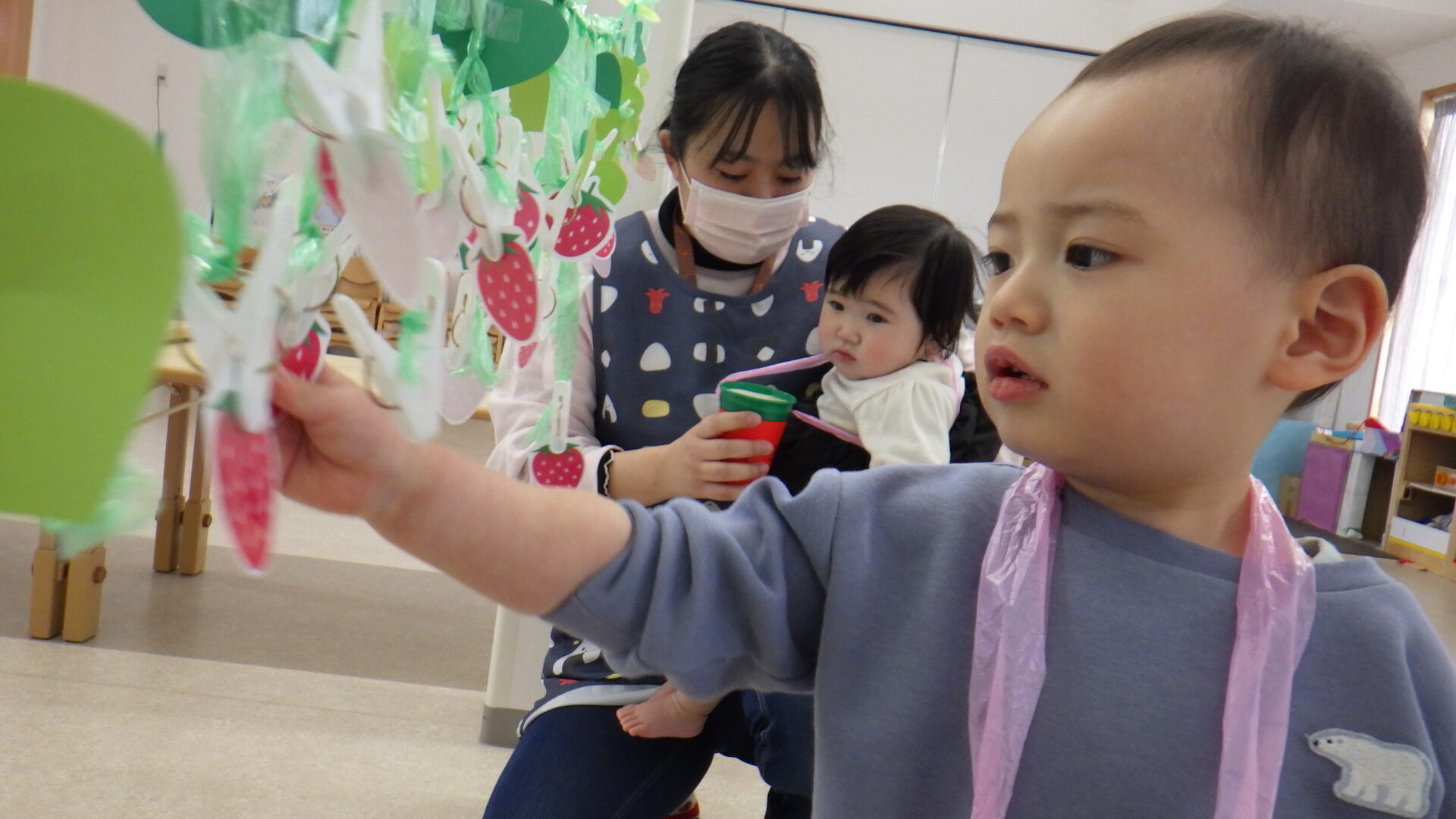 初めてのいちご狩りごっこを、一人一人が楽しむことが出来たので