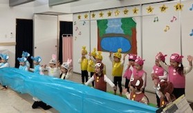 くじら組は、「ともだちや」を演じました。練習時は、なかなか大きな声でできなかったけど・・・頑張りました!