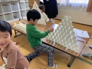 積み上げるどきどきもあれば、崩す時のワクワクもあり・・・。