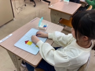 先生から数字の書き方を教えてもらったり、形遊びをしたりしました。