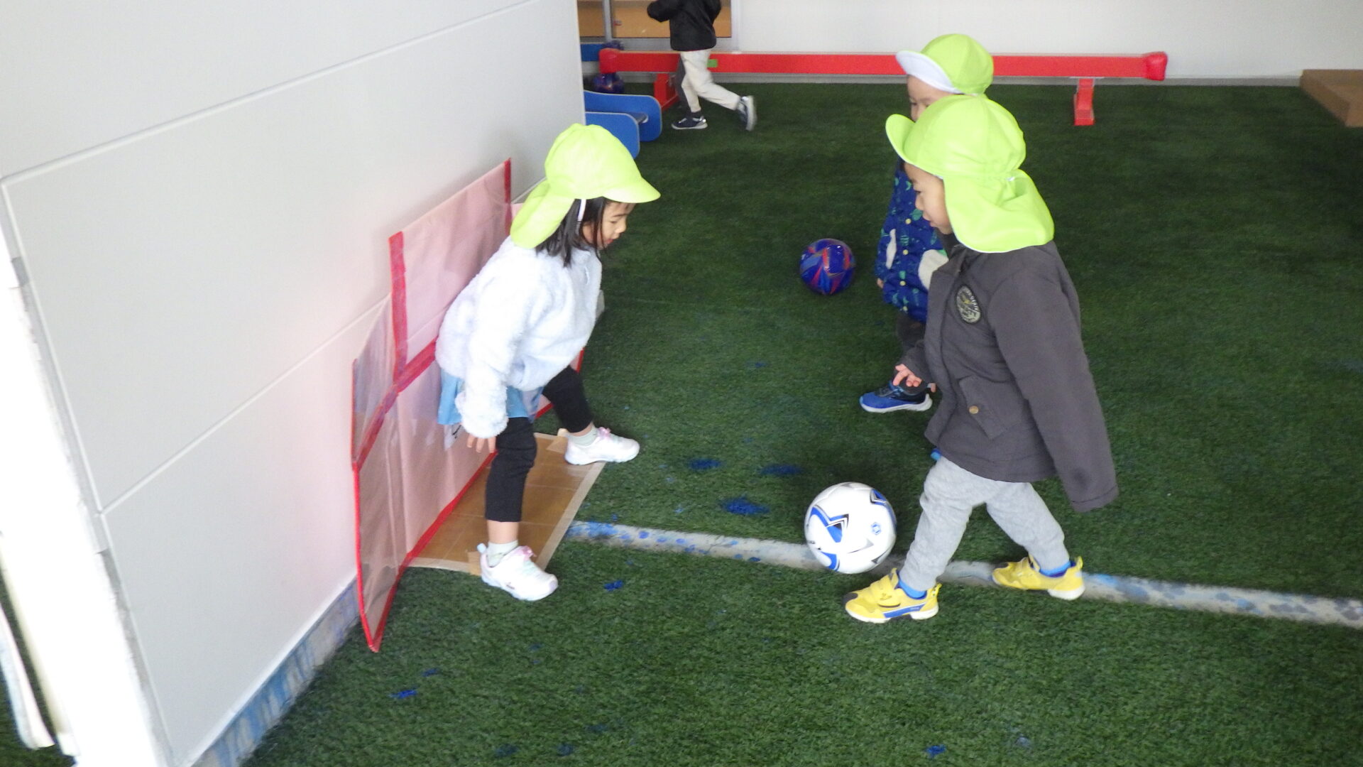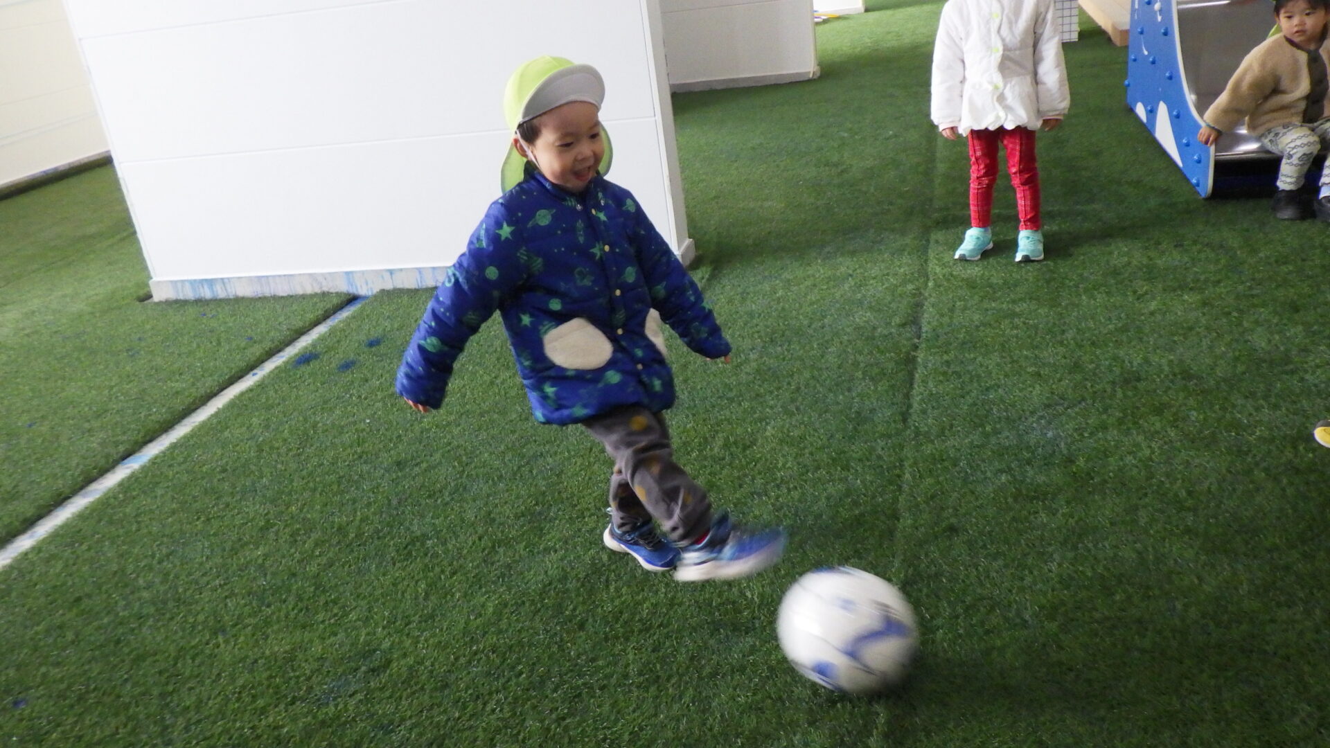 ボールを蹴って楽しんだり、お友だちと蹴り合いっこをしたり!!
