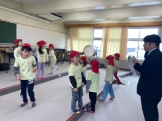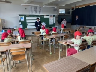 お兄さん、お姉さんの教室。静かに通ります。(この日は、特別に体育館へ行き、卒業式の練習も見せていただきました。そんなくじら組さんももうすぐ卒園・・・)