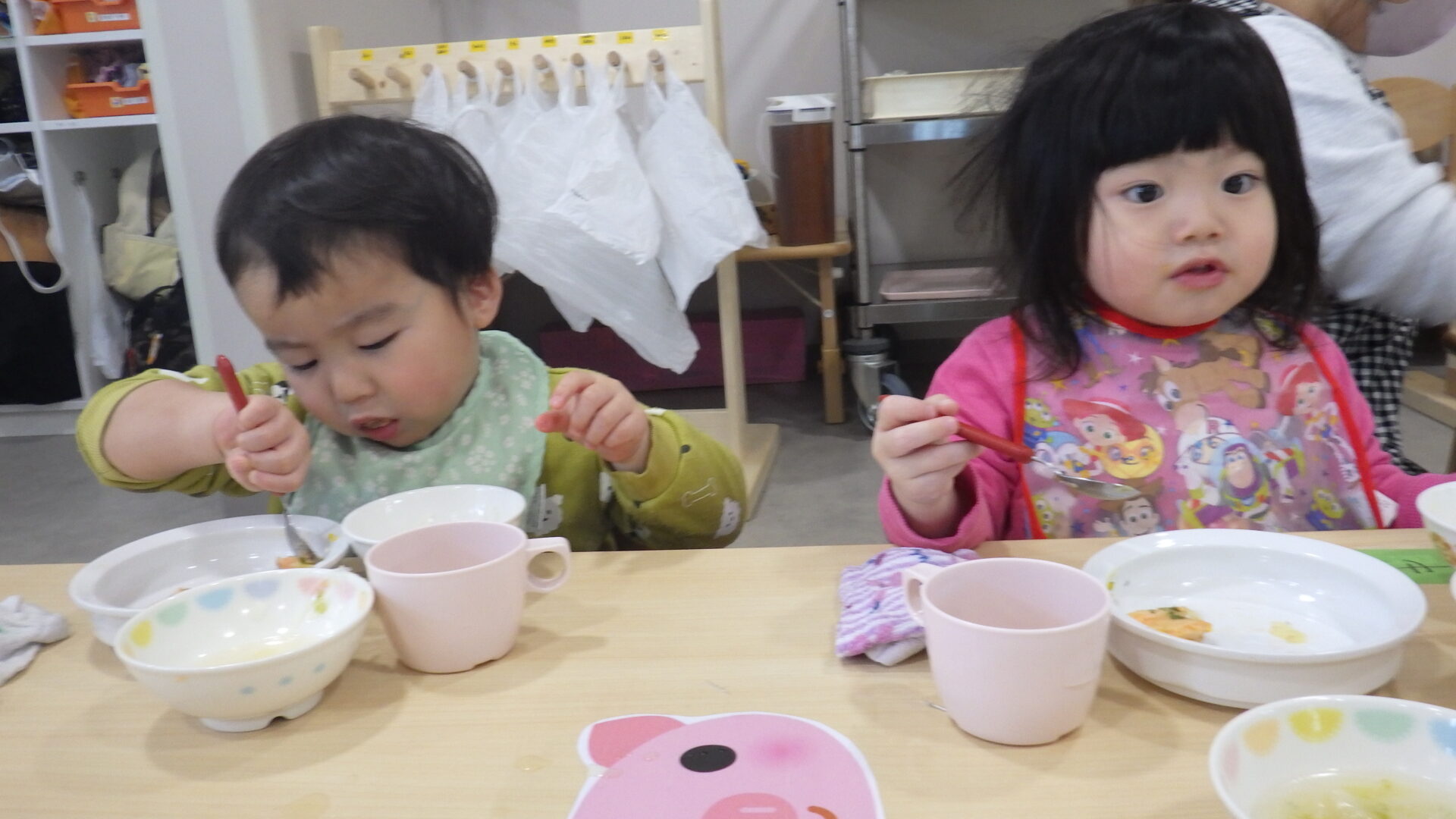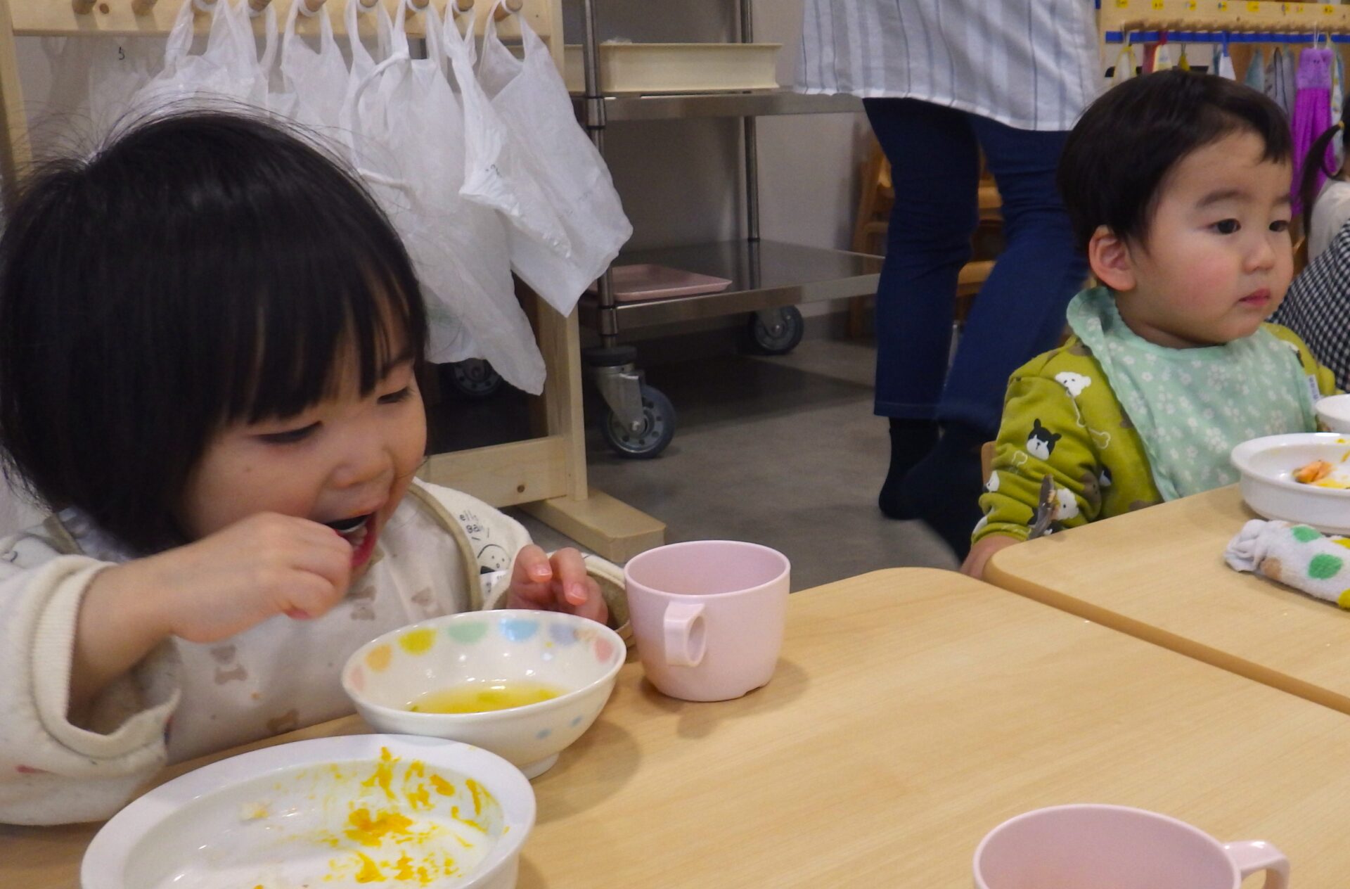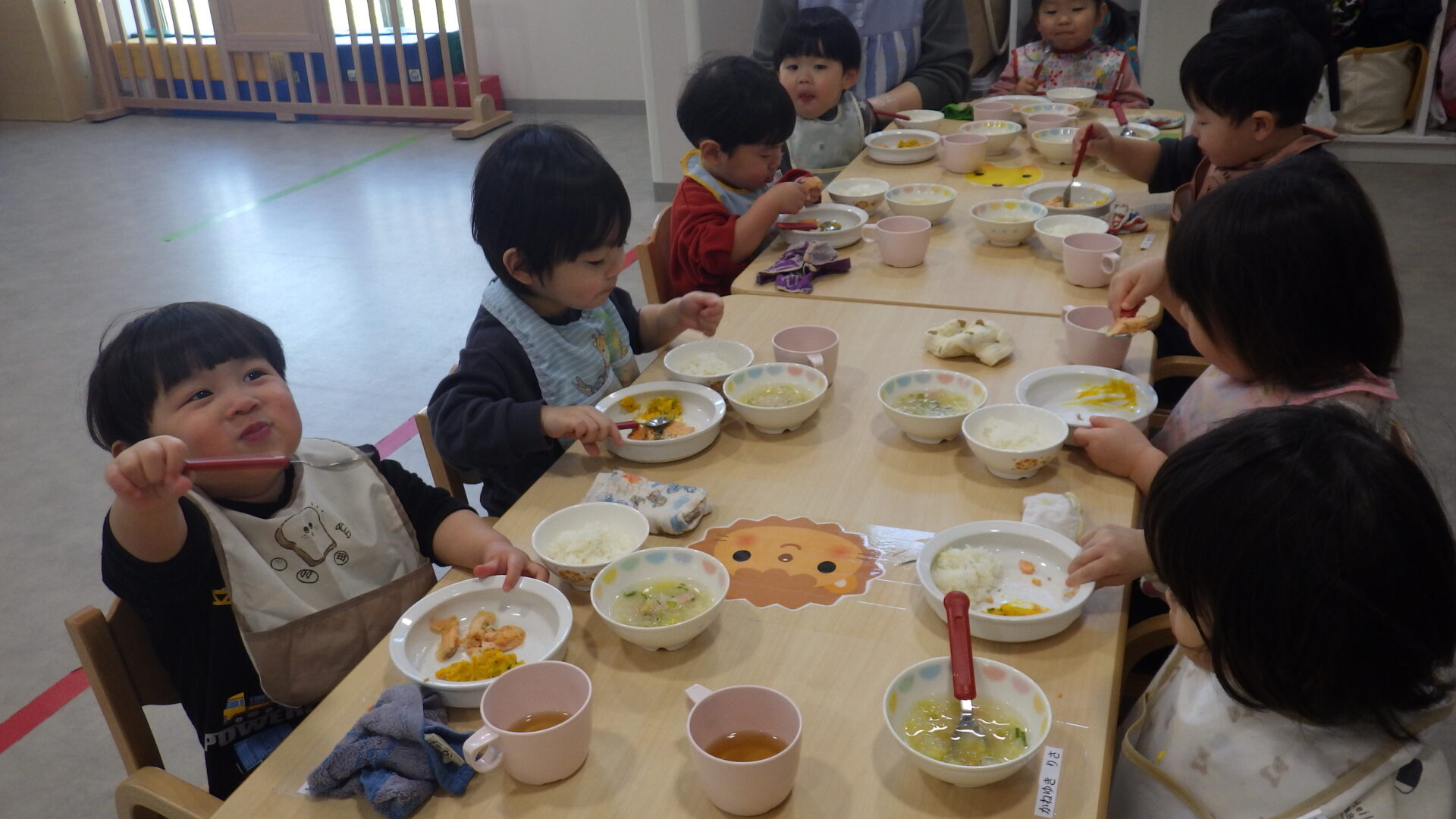 みんなスプーンをしっかり持って姿勢よく食べています!