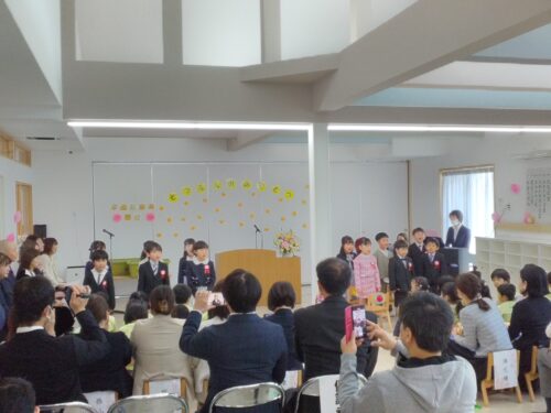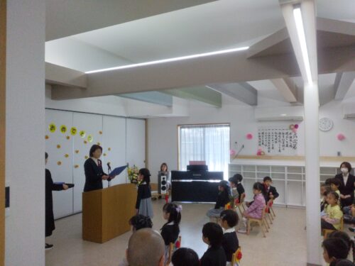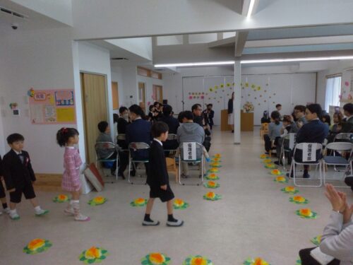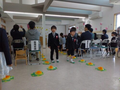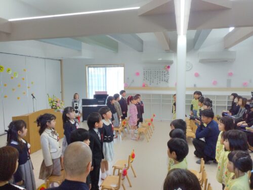 在園児(4歳児)と卒園児(5歳児)でおわかれの言葉を元気に伝えて合いました。