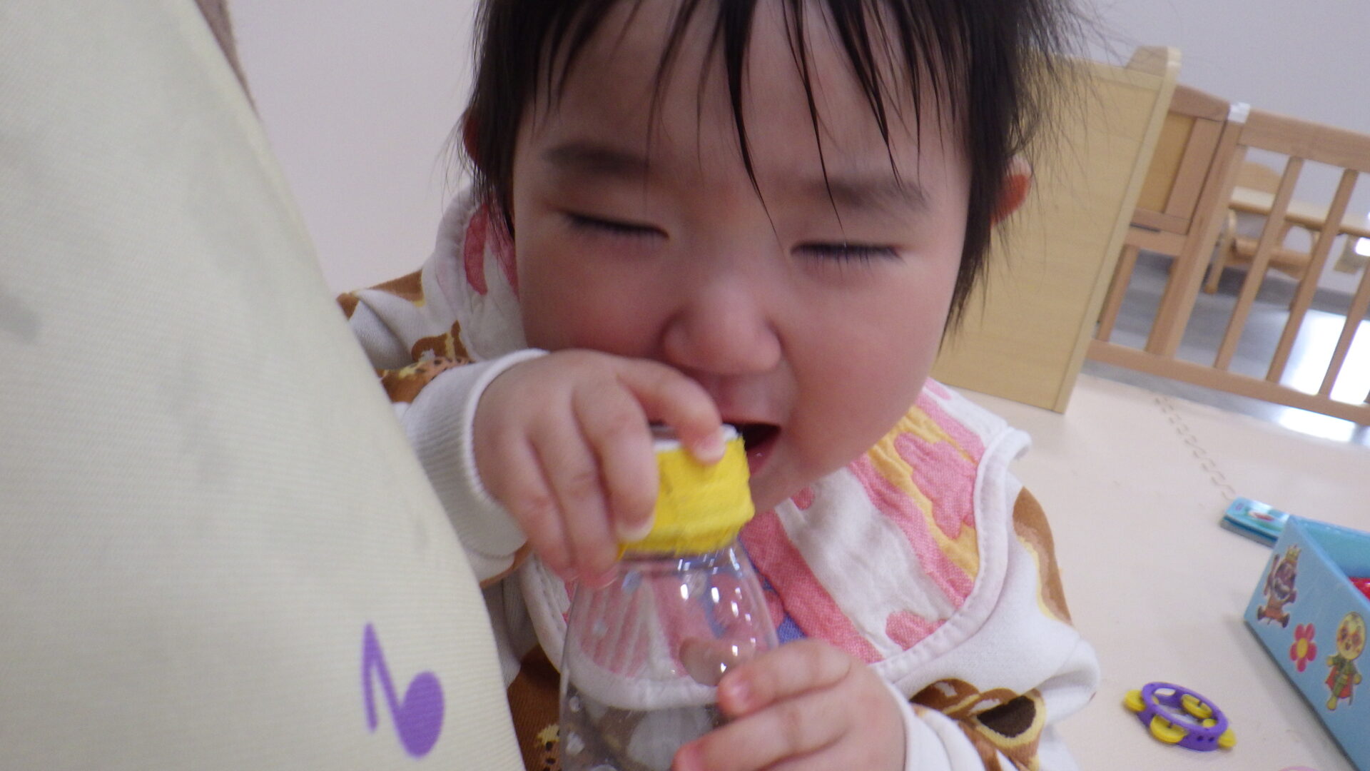口に入れて感触を確かめてみたり、振って音を楽しんだり…。