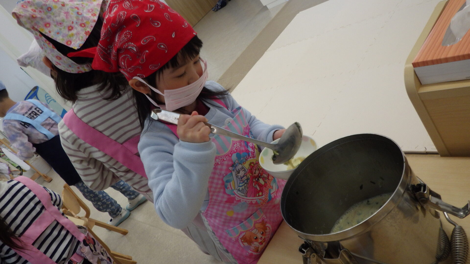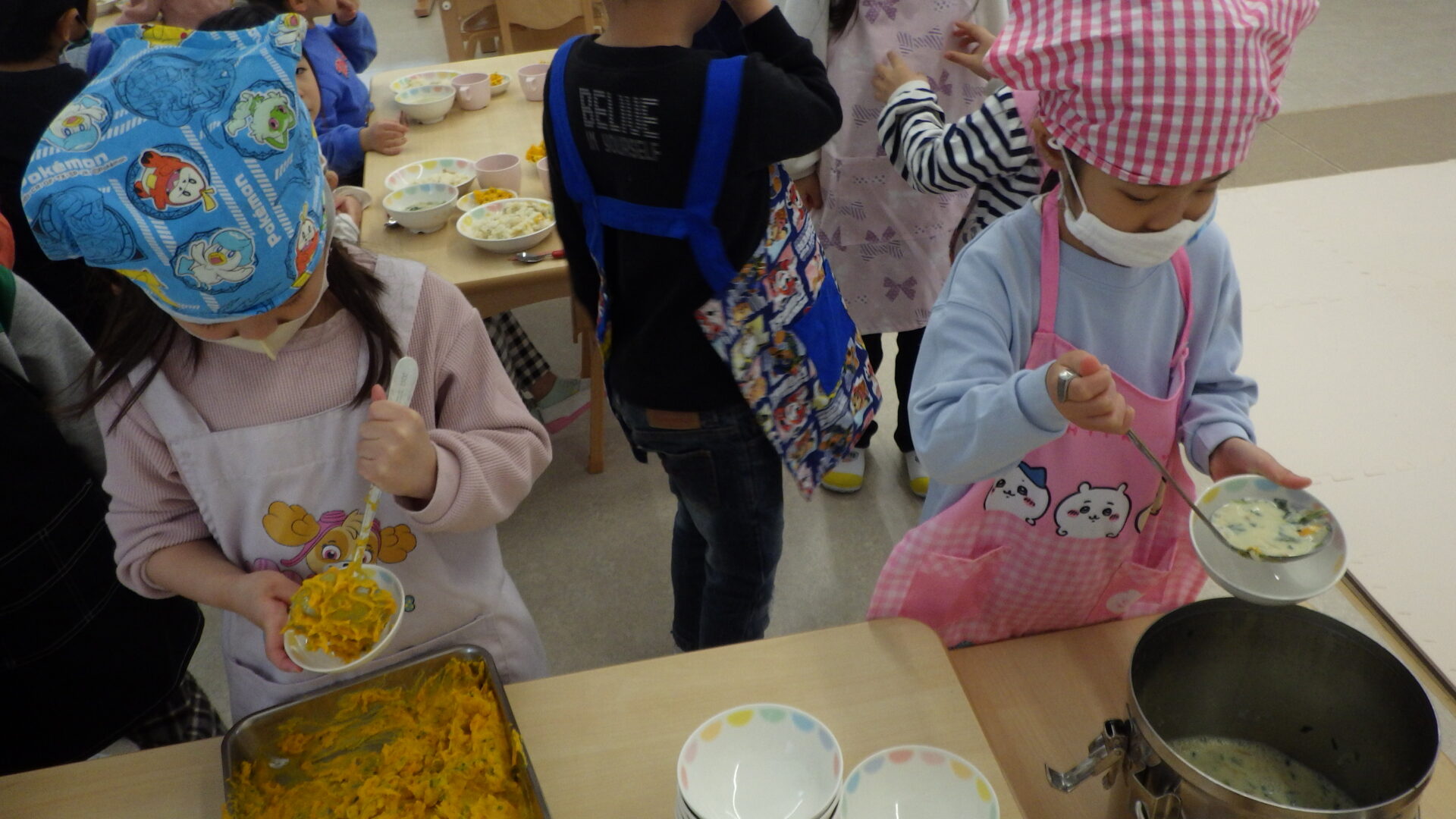 そら組さんの時は、配膳の際、汁もの以外は自分たちでついでいたのですが、