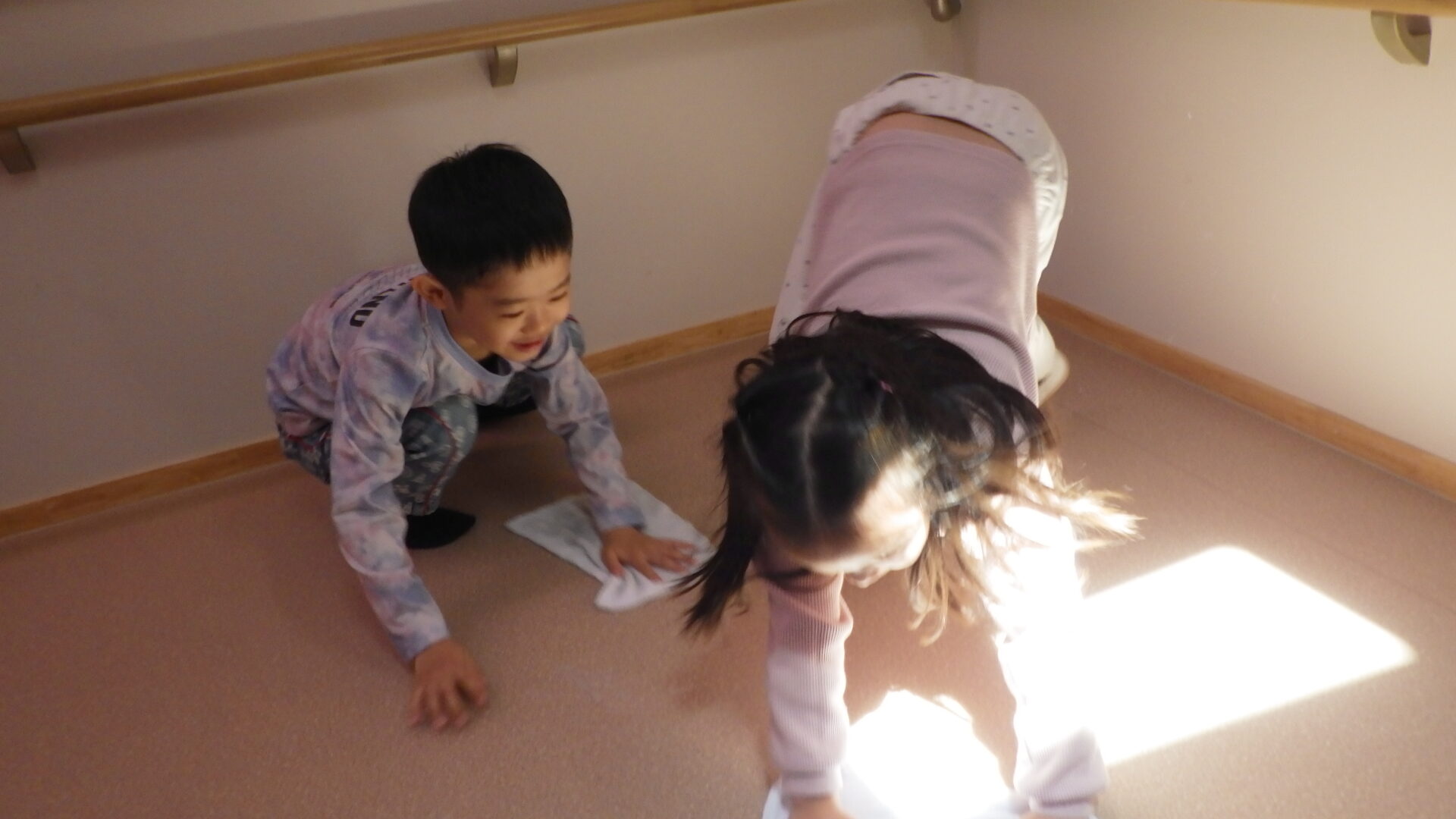 「ぼくここするから、そっちふいて!」「はーい!」