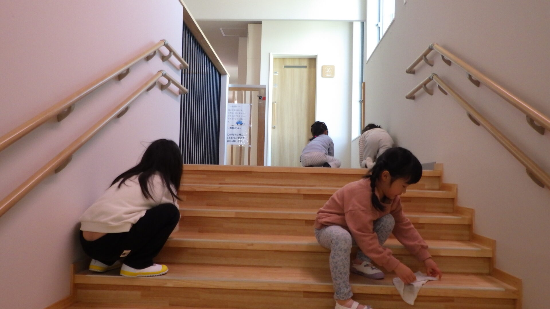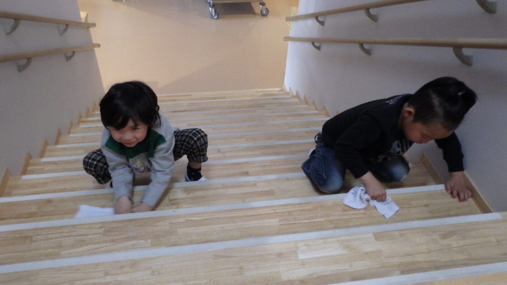 以上児さんが毎日上り下りをしている階段を丁寧に掃除をしてくれています✨
