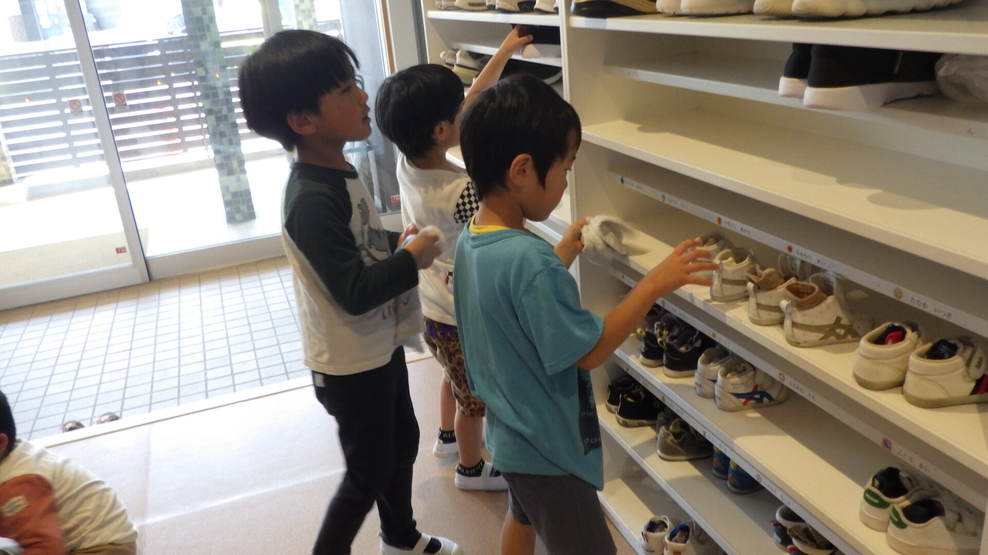 靴箱をみんなで声掛けし分担しながら掃除をしてくれます✨