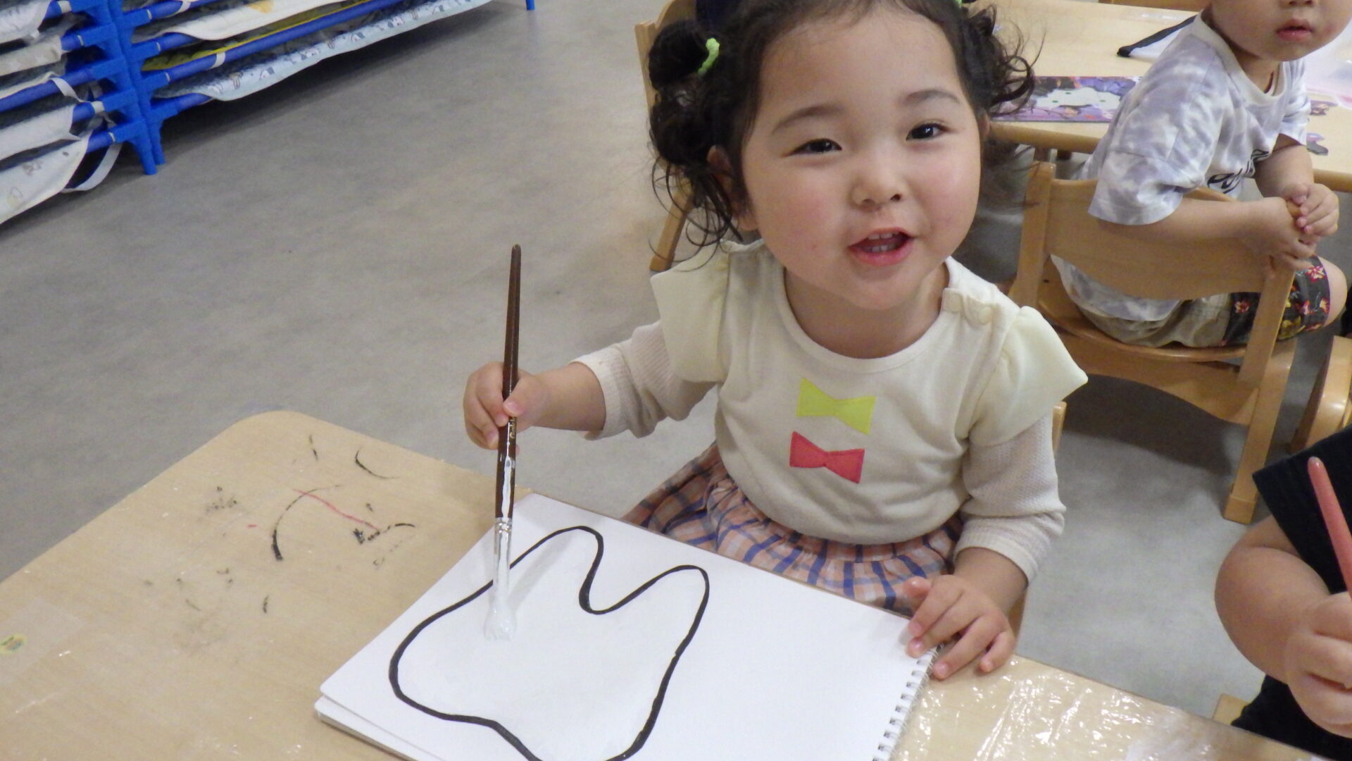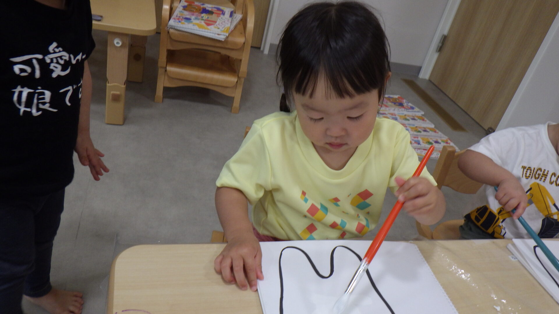 なかなか真剣な表情ですね!筆の持ち方も上手です☆