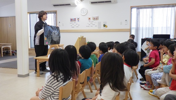 さて、指導員さんが持っている黒いパネルに、何のイラストが描いてあるか、分かりますか?