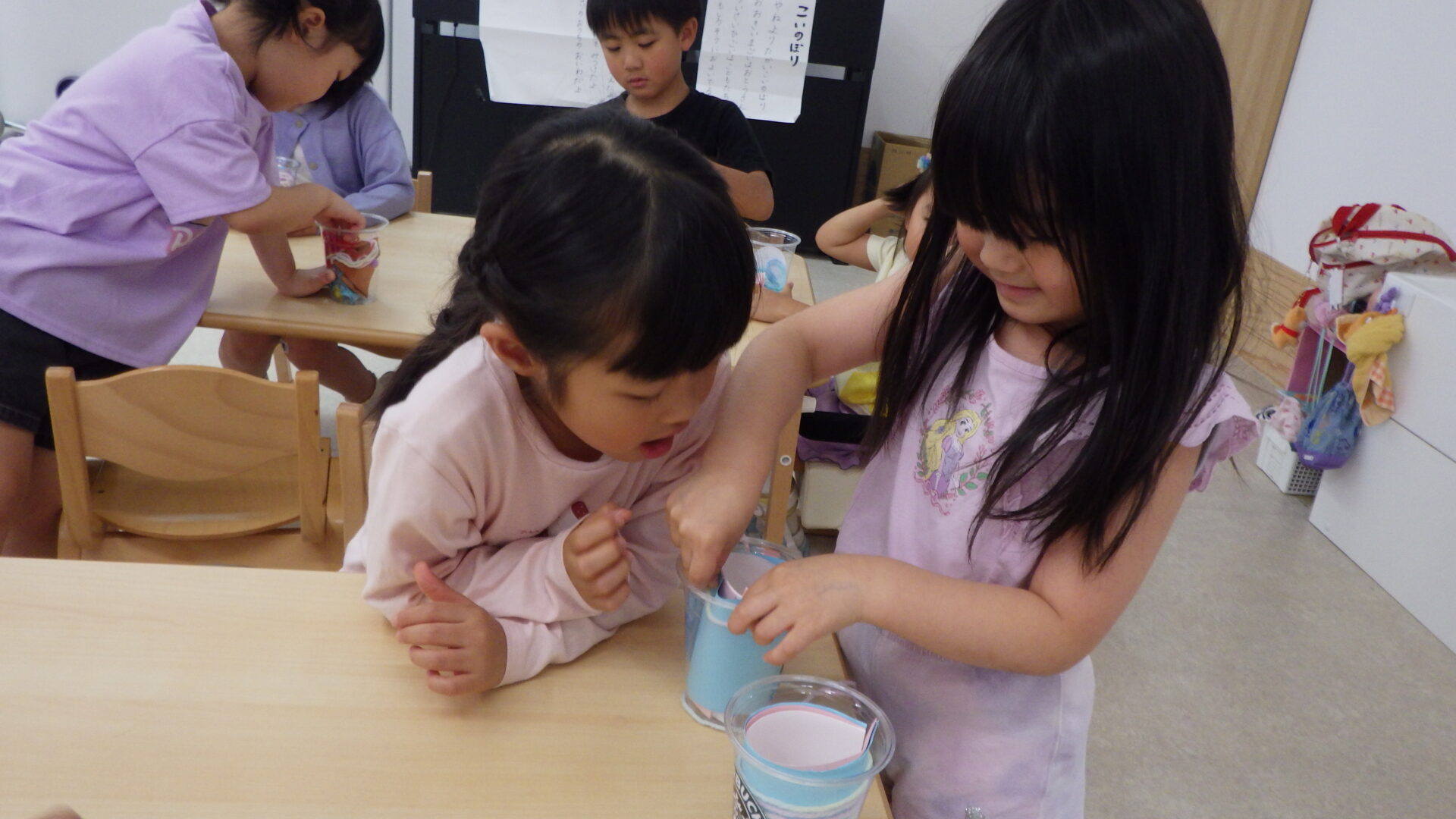 「画用紙をギュッとして中に入れよっ」