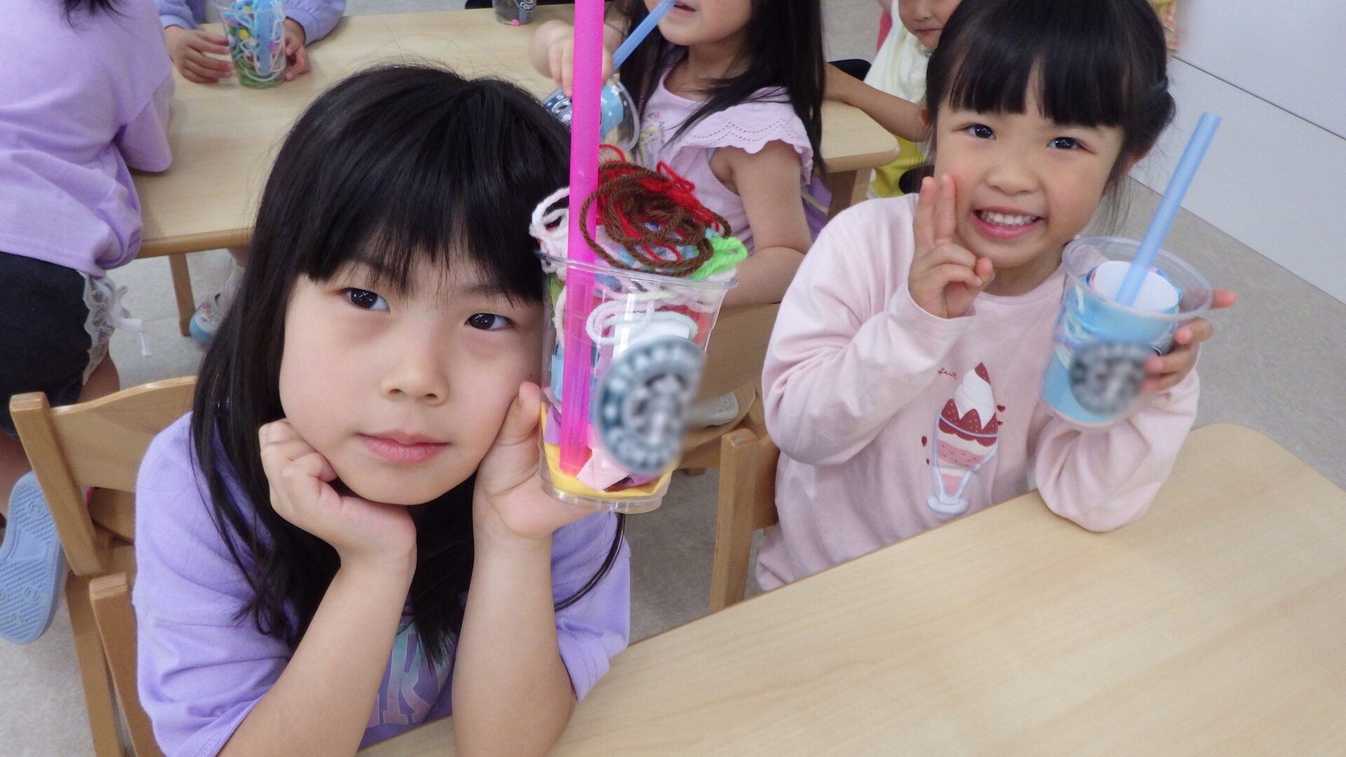 それぞれが好きな材料を入れ、個性豊かな可愛いドリンクがたくさん完成しました!✨