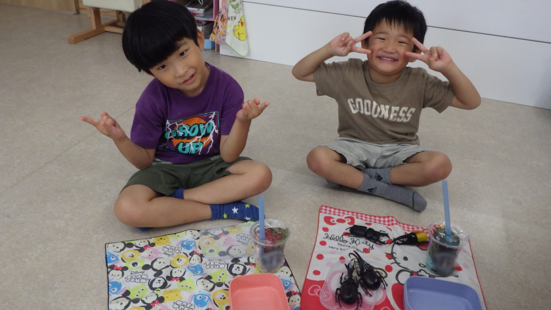 ハンカチをひき、大好きなカブトムシさんたちを連れてピクニックをしたり、