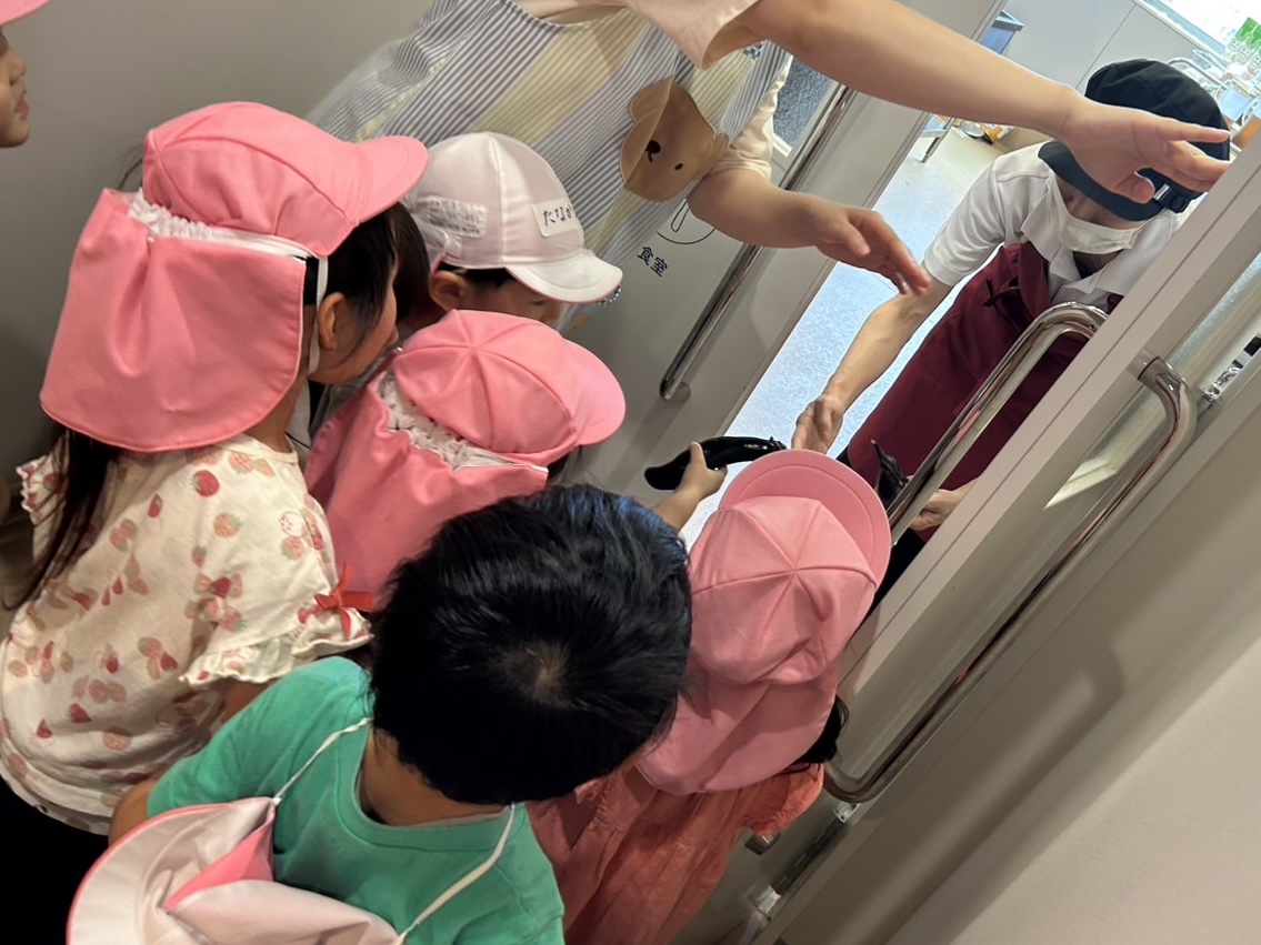 収穫した後は、給食室の先生に「お願いします」とみんなでナスを届けました☆