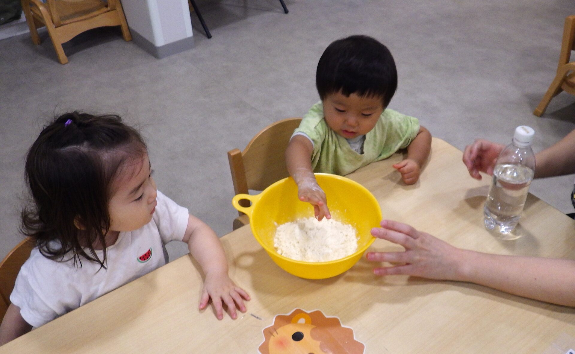 口に入れても安心な小麦粉粘土は、お外あそびができない時にもぴったりです。